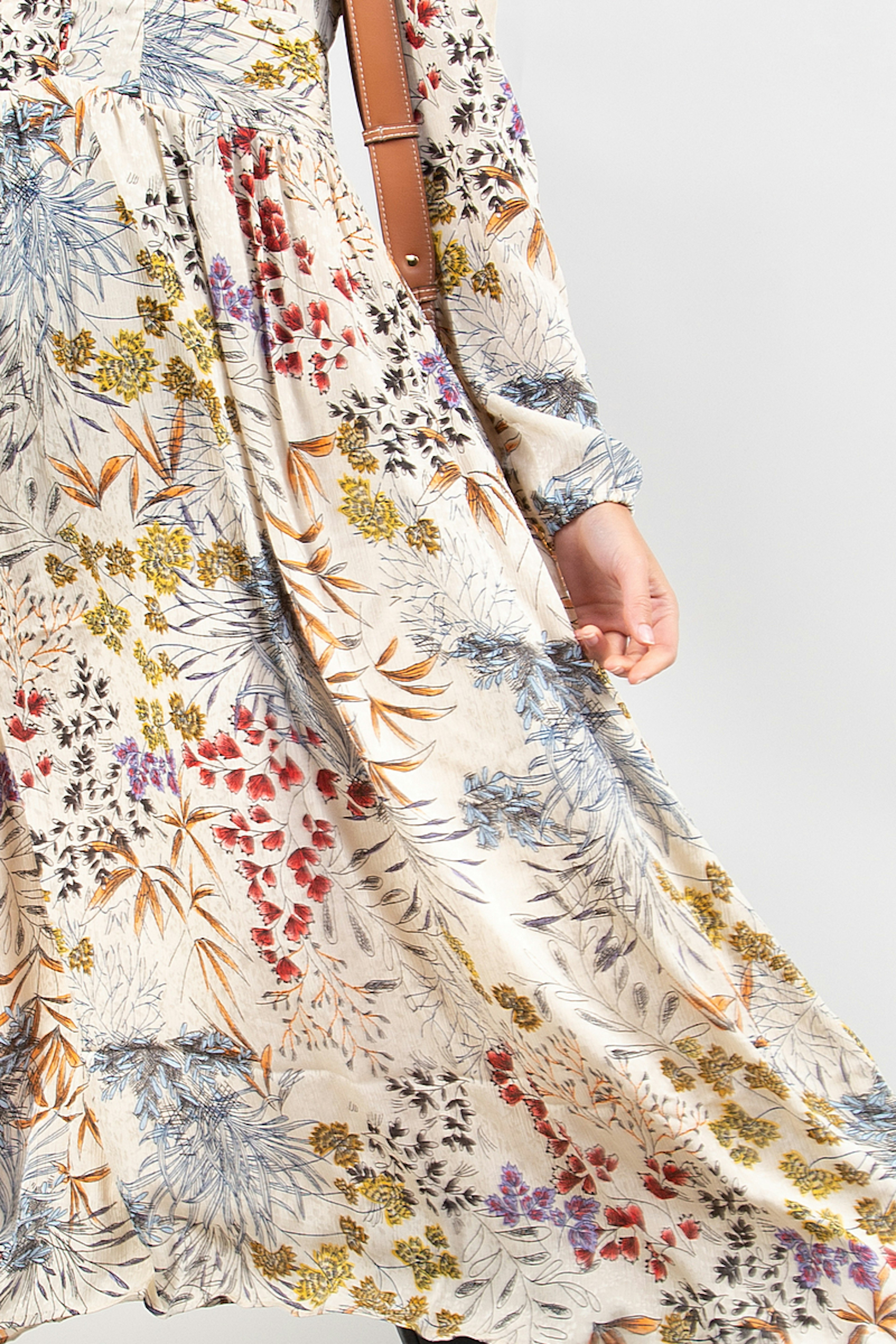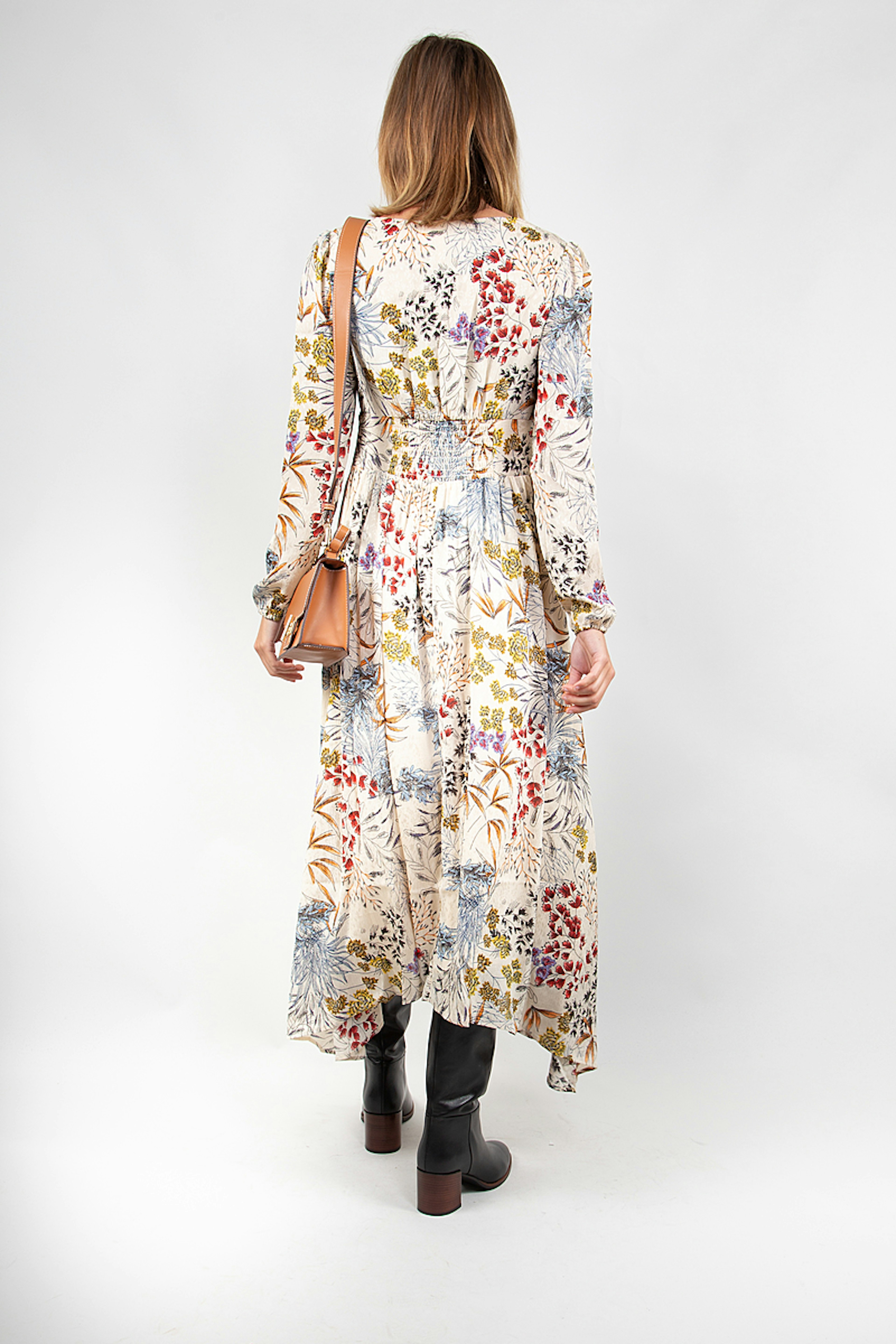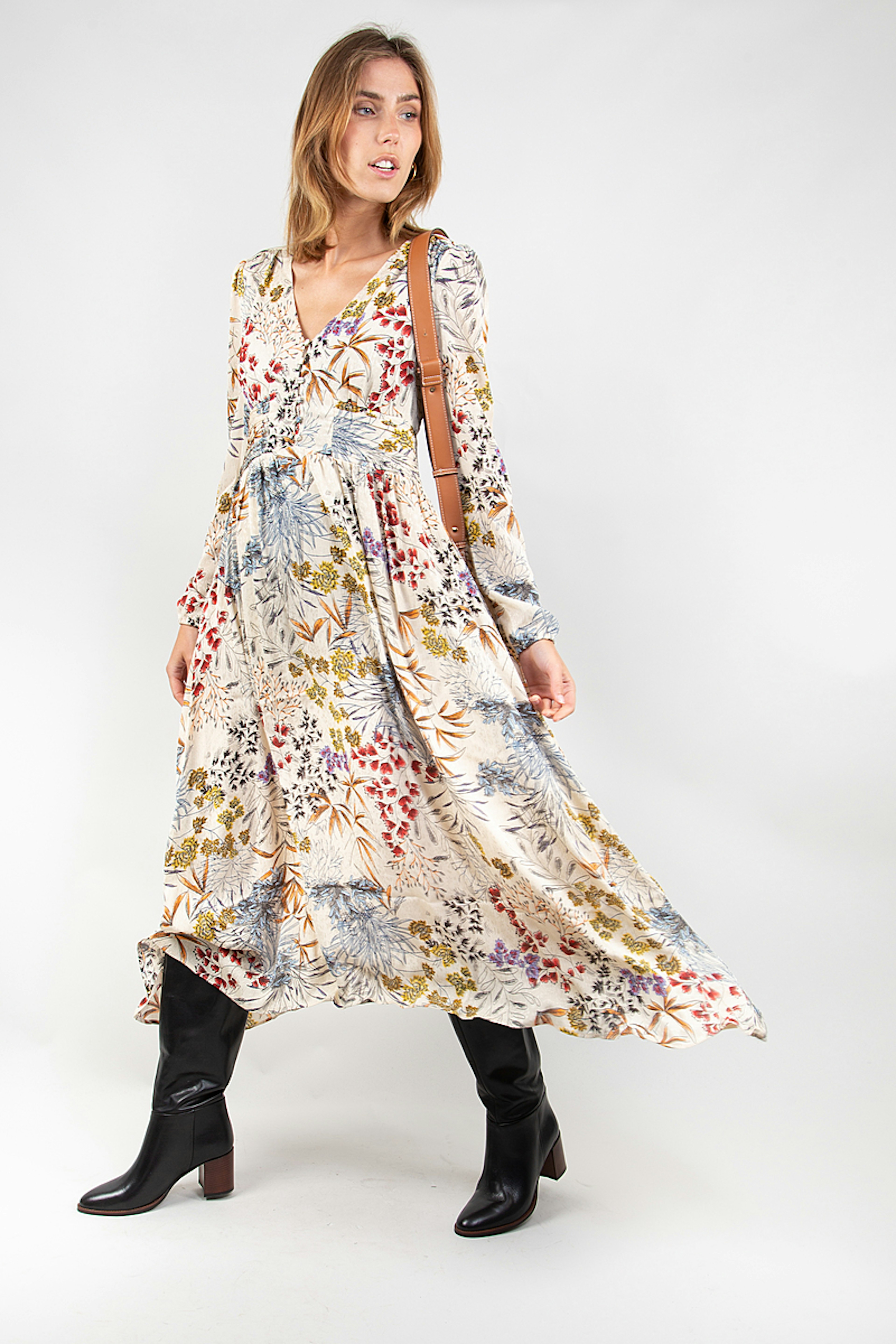 Cette robe fluide et bohรจme fait partie de la collection Promod for Good. โ€ข Voile en polyester recyclรฉ โ€ข Dรฉcolletรฉ V plongeant โ€ข Ouverture par boutons recouverts โ€ข Taille haute marquรฉe par un jeu de plis โ€ข Manches longues โ€ข Poignets รฉlastiquรฉs โ€ข Doublure โ€ข Finition piquรฉe