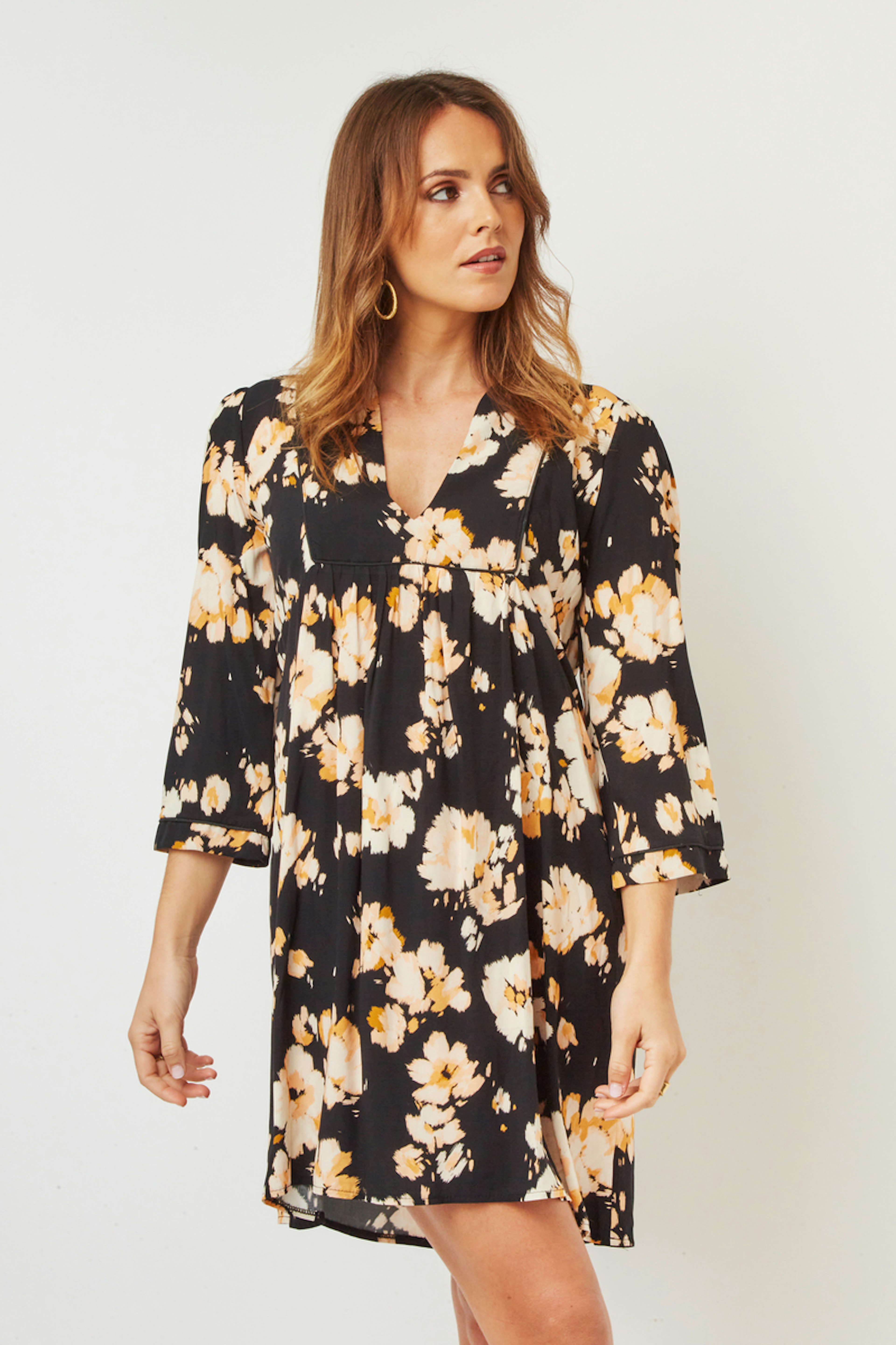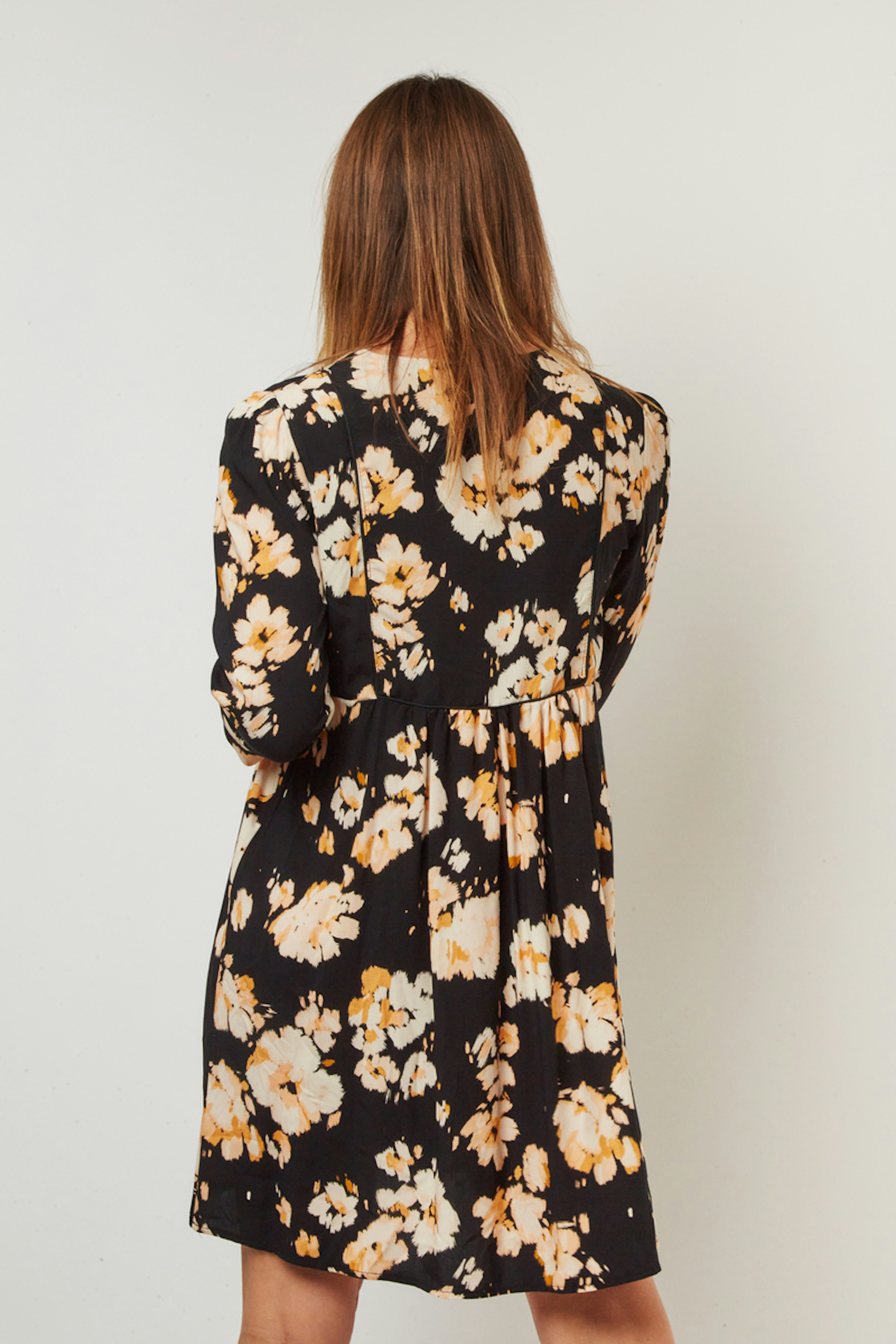โ€ข Robe imprimรฉ courte โ€ข Manches longues โ€ข Encolure V plongeant โ€ข Fronces aux รฉpaules โ€ข Plastron devant et derriรจre โ€ข Composition: 100% Viscose โ€ข Fabriquรฉ en France