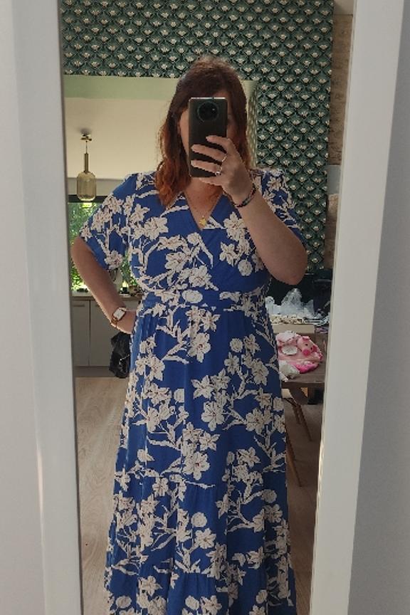 โข Robe longue โข Top cache cลur โข Volant froncรฉ en bas de jupe โข Manches courtes โข Taille รฉlastiquรฉe