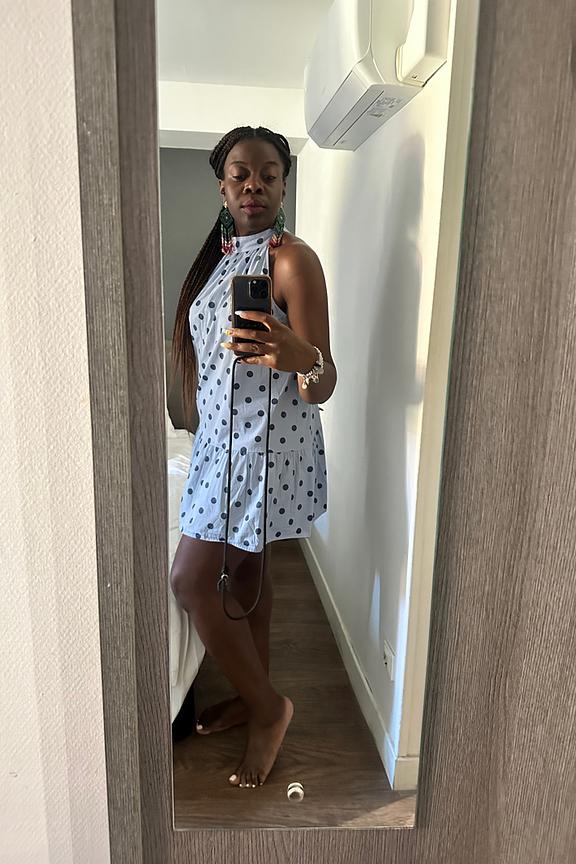 “J'ai adoré cette robe même en la portant à 6 mois de grossesse. Elle est élégante sans en faire trop. Elle est large donc s'adapte très bien à toute morphologie. J'ai beaucoup aimé la matière un peu rigide.”