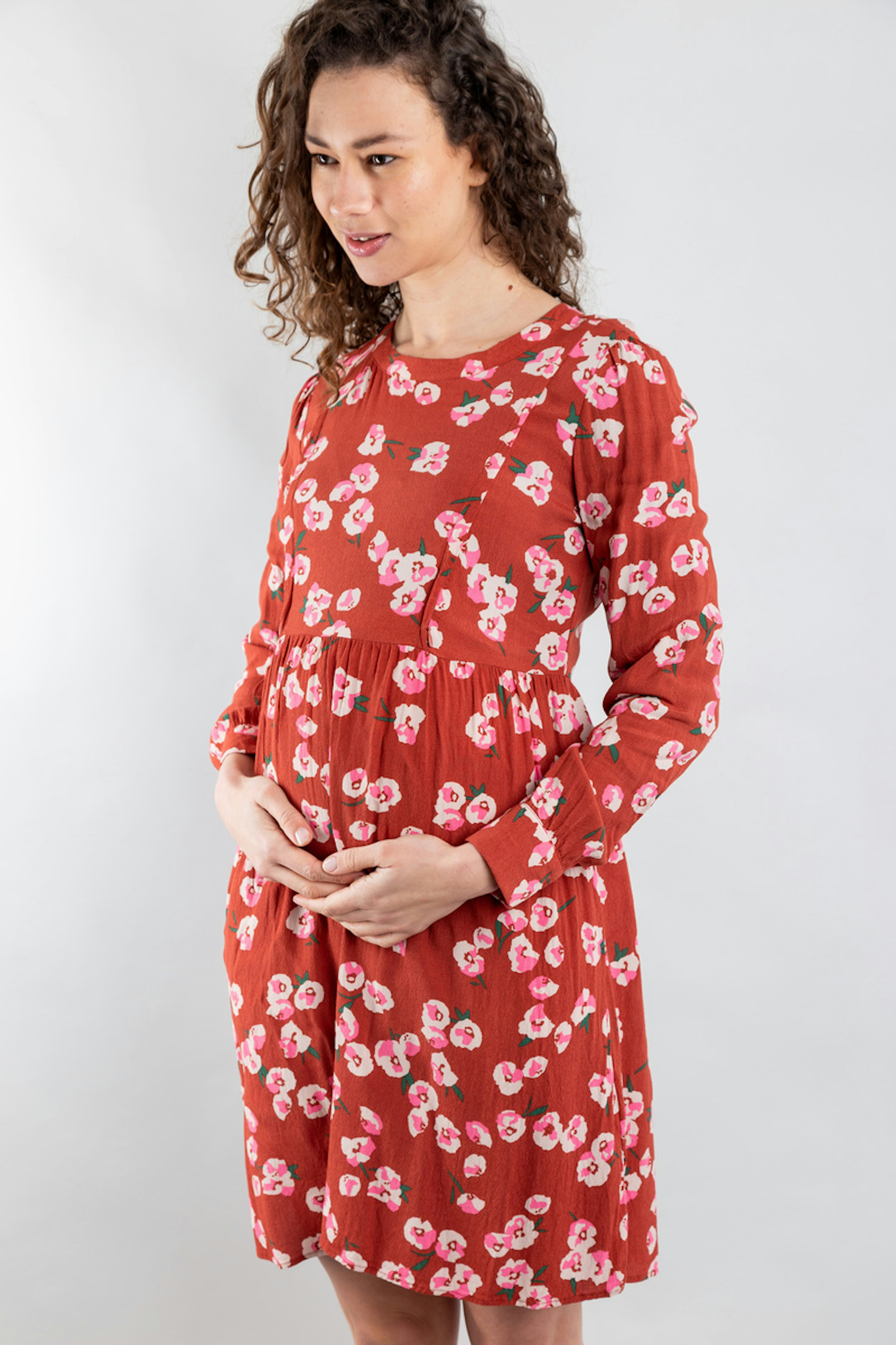 โข Un style fรฉminin avec un secret d'allaitement astucieux, la robe de grossesse et d'allaitement ร fleurs rouille de chez Sรฉraphine est conรงue pour รชtre ajustรฉe et flatteuse pendant la grossesse et au-delร โข Confectionnรฉ en crรชpe de viscose tissรฉ doux, le style drape magnifiquement votre ventre en pleine croissance, tandis que les fronces ร la taille empire flattent votre silhouette ร chaque รฉtape โข Aprรจs la naissance de bรฉbรฉ, des fermetures รฉclair d'allaitement discrรจtes s'ouvrent
