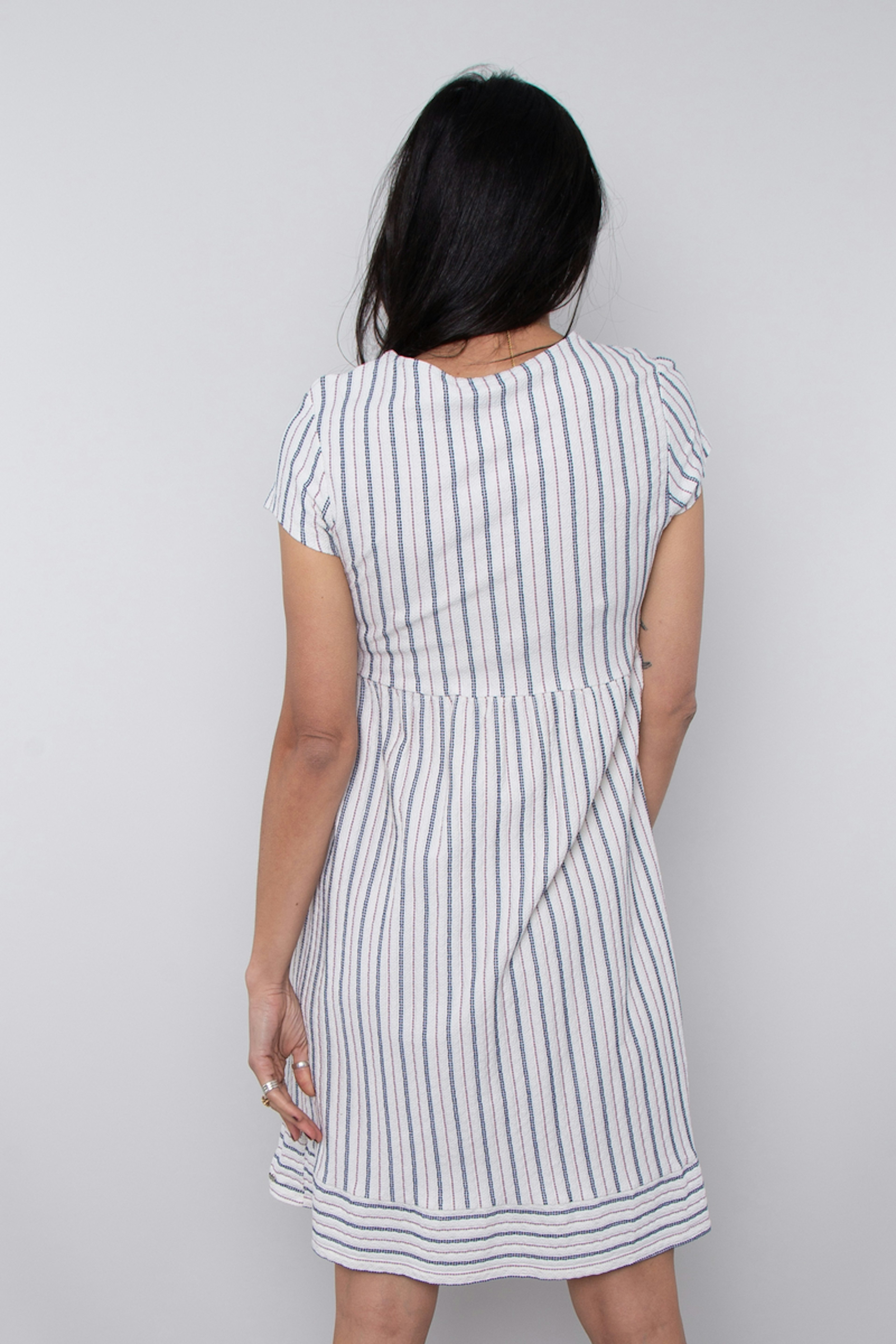 โข Robe de grossesse ร rayures โข Coupe รฉvasรฉe โข Tissu doux en coton mรฉlangรฉ โข Zip dissimulรฉ sous la poitrine pour un allaitement facile โข Longueur au-dessus du genou