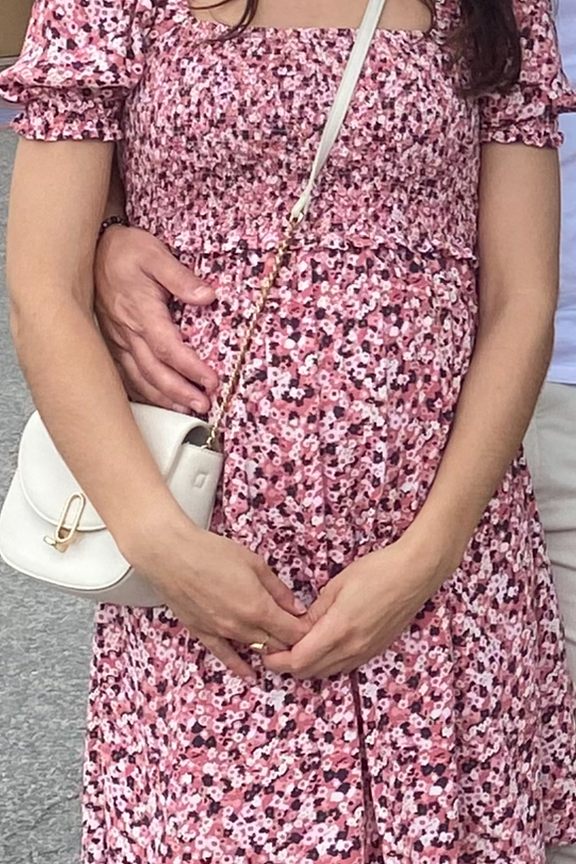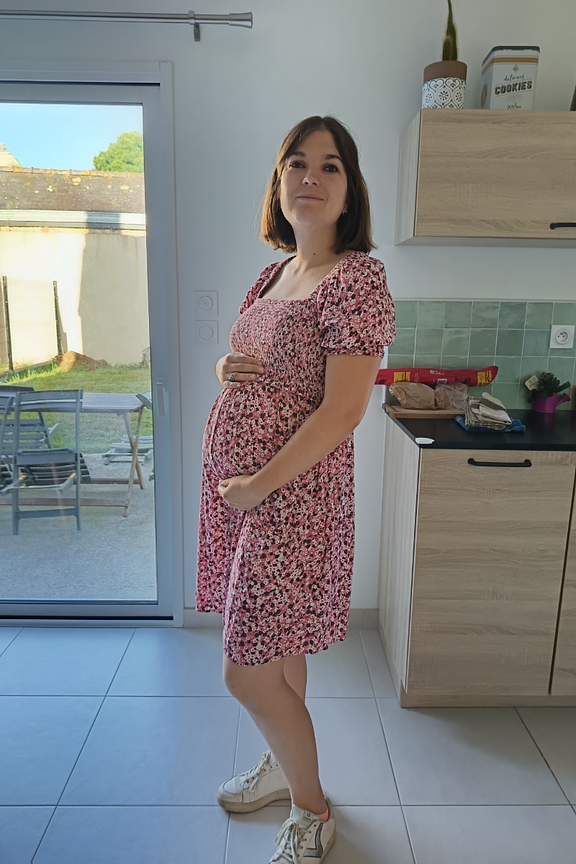 “Imprimé sympa mais trop serrée sous les aisselles et vraiment la coupe maternité (plus long devant)”