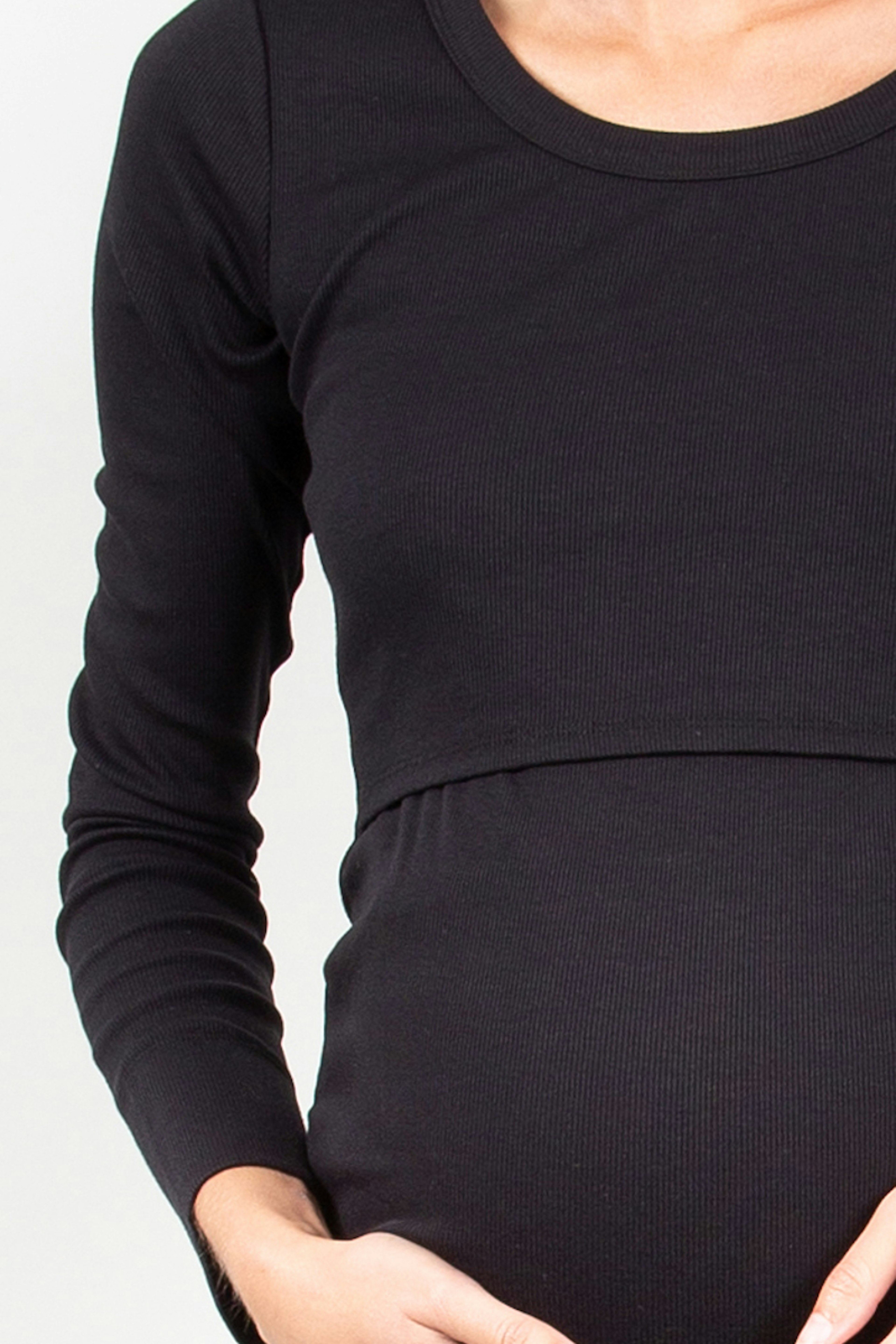 On craque pour cette robe noire de grossesse qui flattera ร  coup sรปr votre silhouette de future maman. โ€ข Robe longue de grossesse noire โ€ข Encolure ronde โ€ข Ouverture discrรจte au niveau de la poitrine pour l'allaitement โ€ข Coupe prรจs du corps โ€ข Tissu extensible en coton biologique
