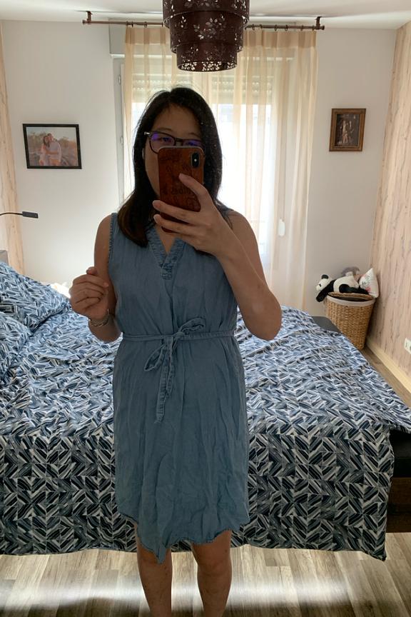 “Jolie coupe. Tissu léger et confortable. Petite ceinture pour ajuster la taille.”