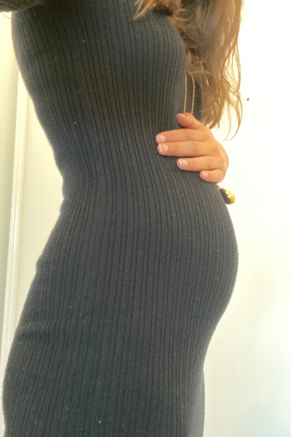 Craquez pour lโรฉlรฉgance intemporelle avec cette robe noire, parfaite pour toutes les saisons. Un cardigan douillet et des sneakers pour un look dรฉcontractรฉ chic. โข Robe de maternitรฉ โข Coupe confortable โข Couleur noir classique