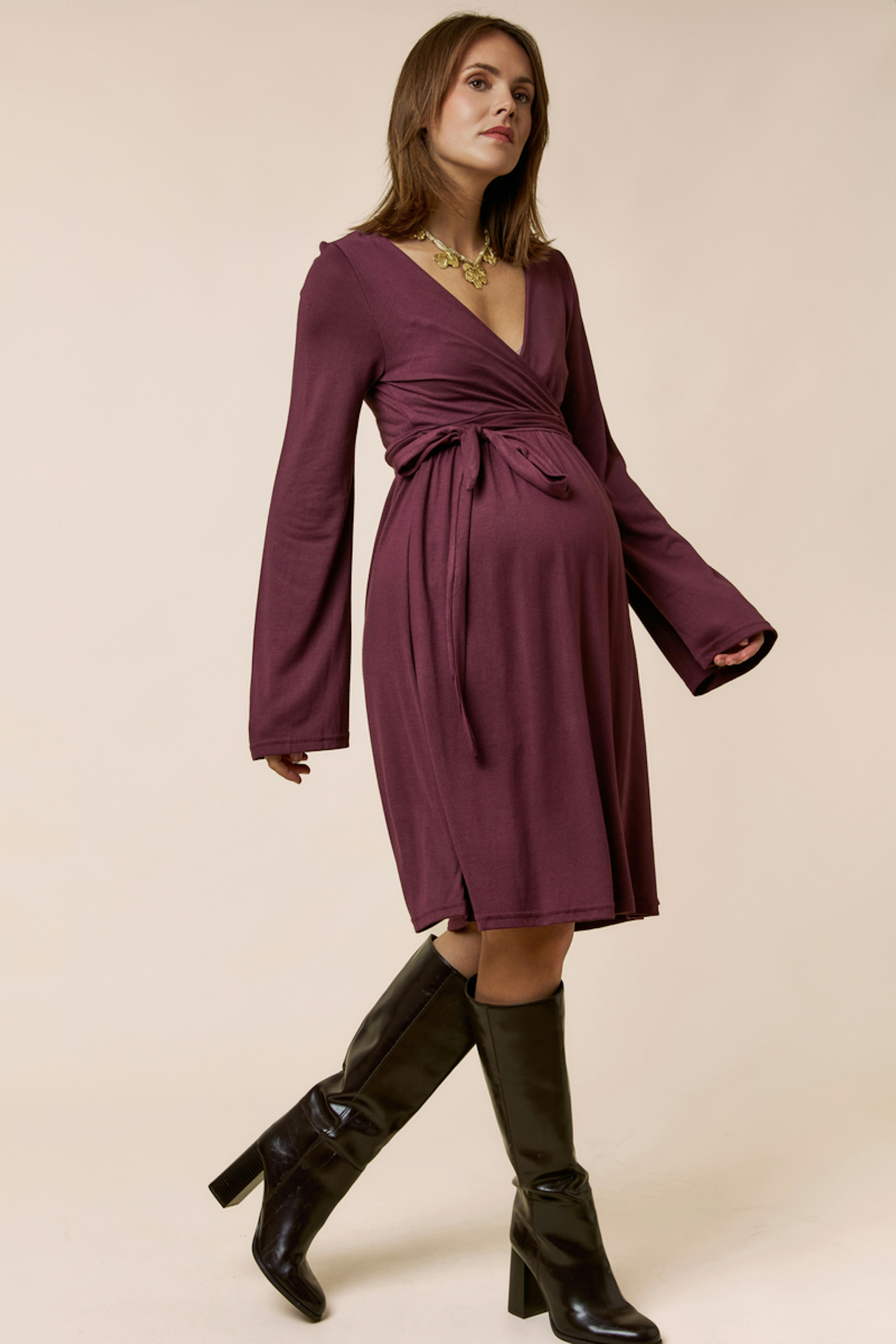 Associez cette robe avec des bottes montantes et un collier délicat pour un look chic et confortable. Idéale pour l'hiver. • Robe courte • Coupe portefeuille • Manches longues • Décolleté en V • Ceinture à nouer
