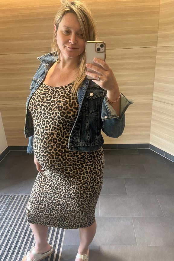 โข Robe courte Maternitรฉ Mia โข Motif imprimรฉ lรฉopard โข Sans manches โข Modรจle conรงu pour s'adapter ร vos formes jusqu'ร la naissance