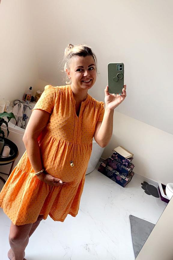 Ajoutez un éclat solaire à votre garde-robe estivale avec cette robe maternité, parfaite avec des sandales et un chapeau de paille ! • Robe en coton • Manches courtes • Jupe à volants aériens • Motif de broderie ajourée
