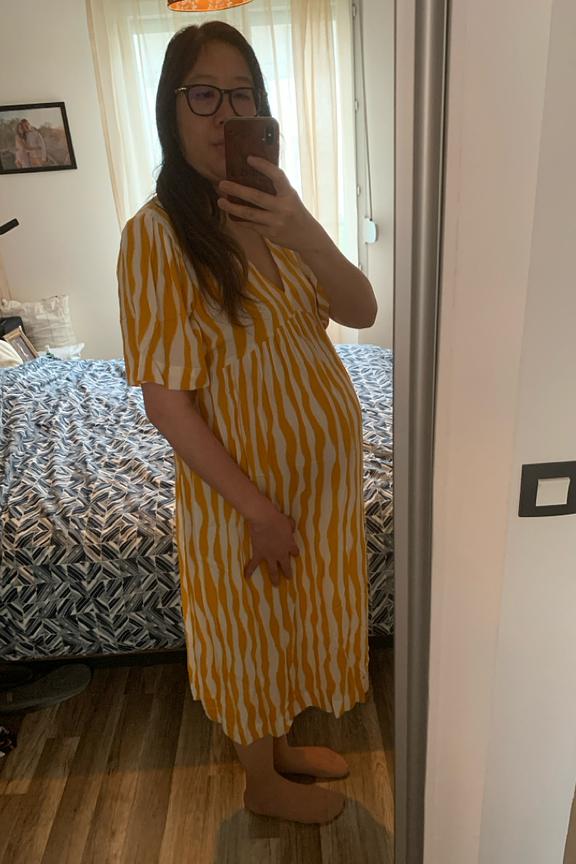 Laissez-vous ensoleiller par cette robe lumineuse, parfaite pour flรขner avec รฉlรฉgance. Un must-have pour les futures mamans rayonnantes! โ€ข Robe maternitรฉ en viscose โ€ข Coupe fluide et confortable โ€ข Motif rayรฉ horizontal