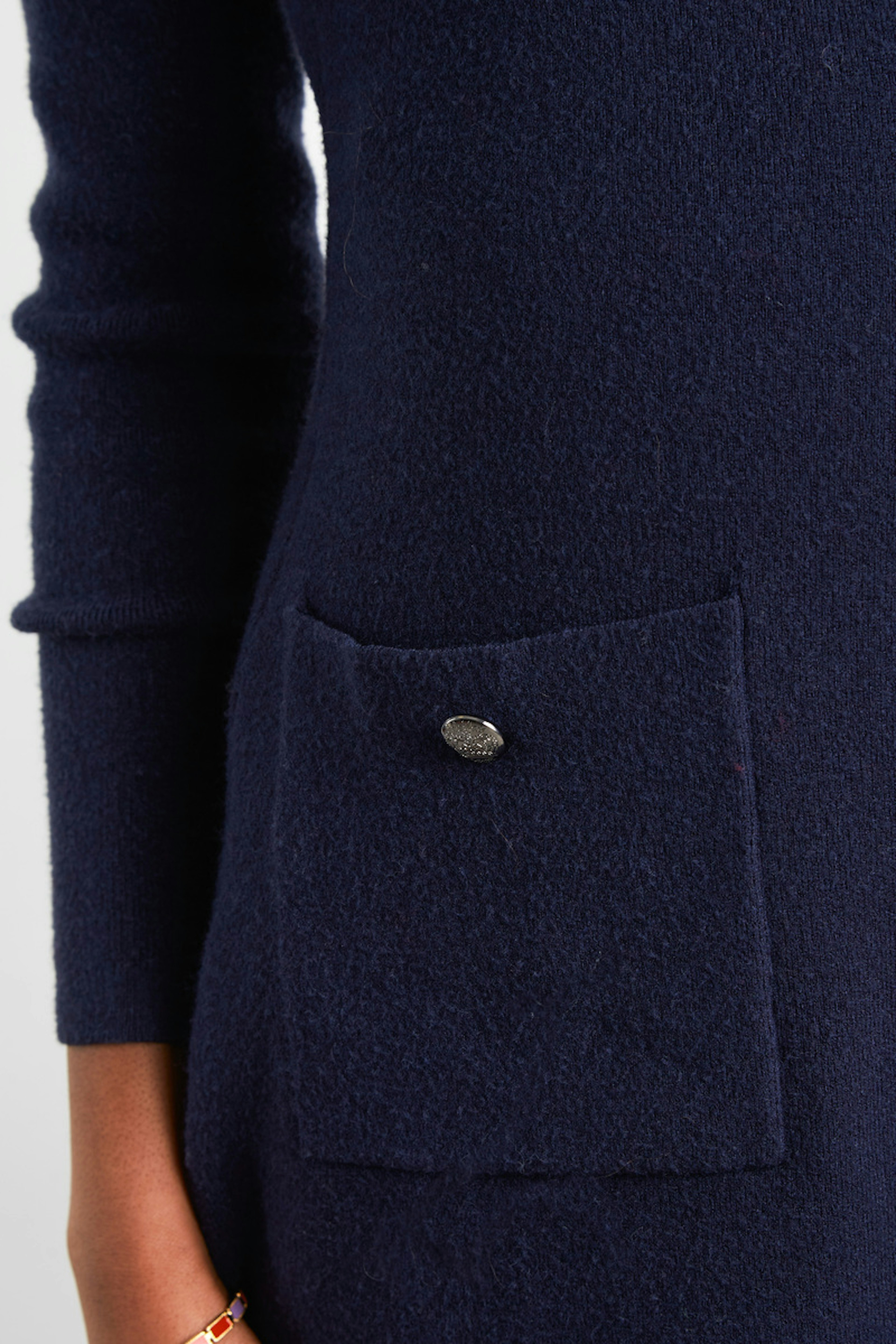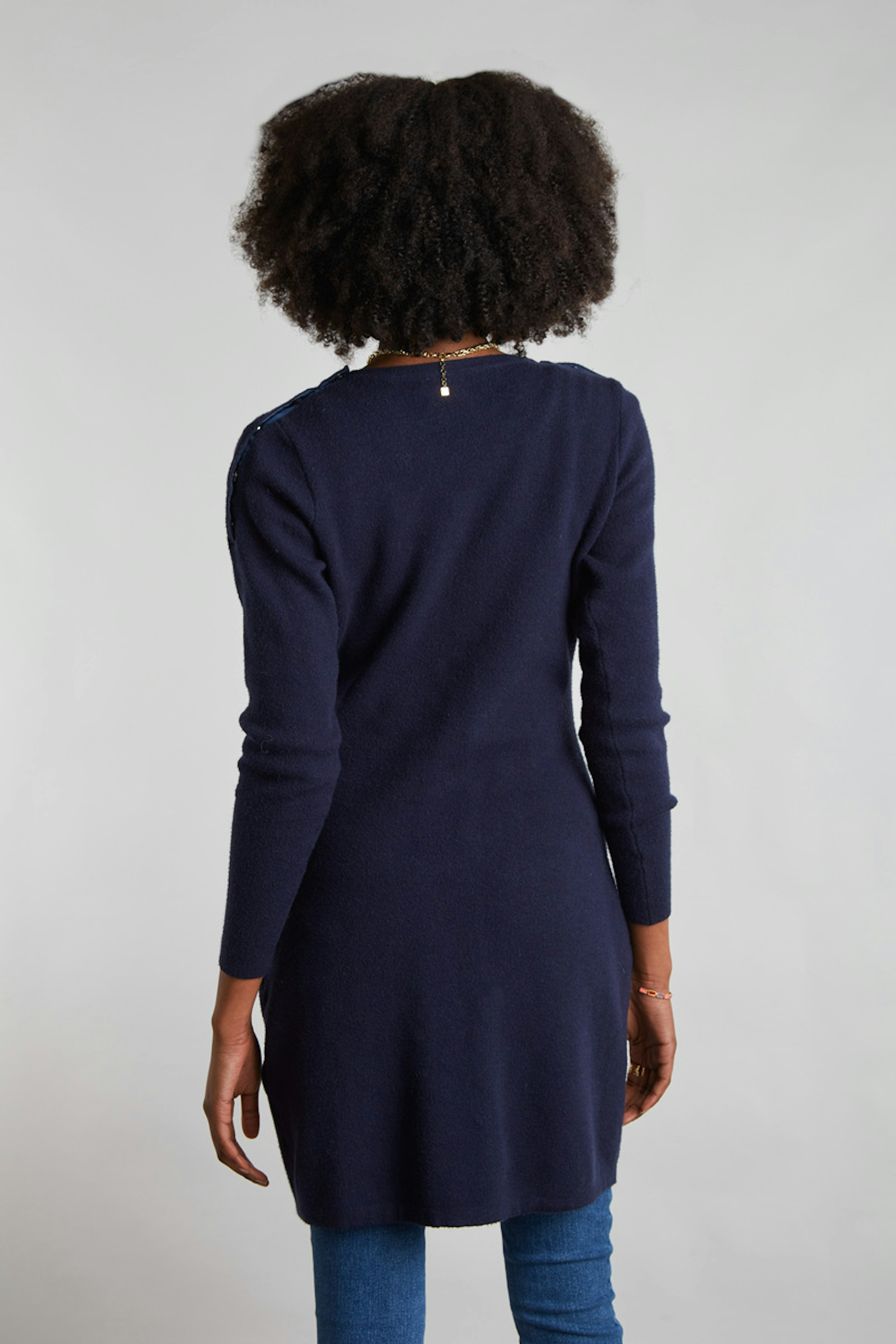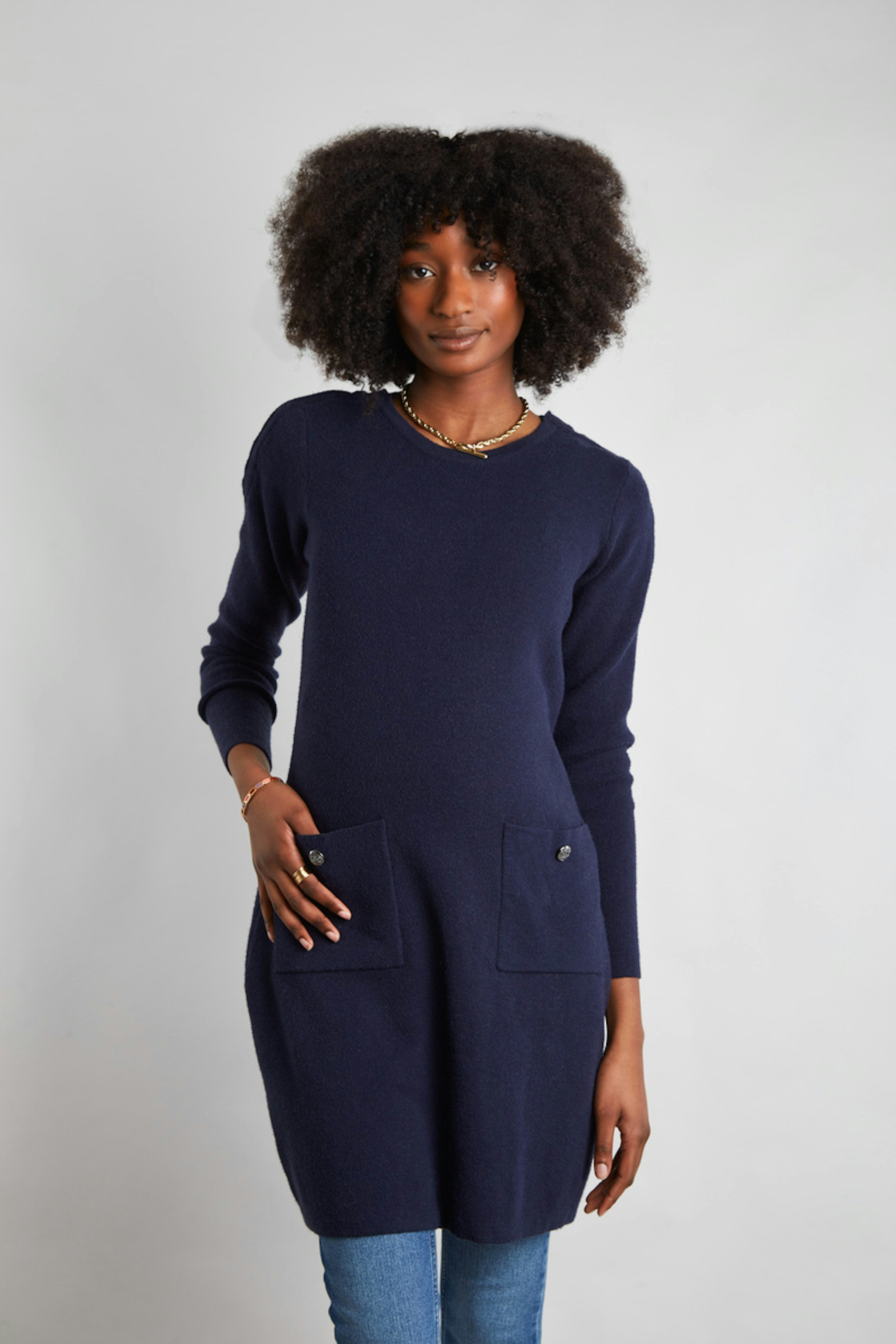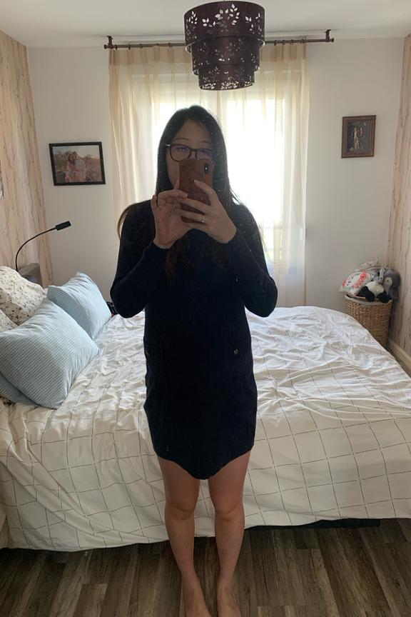โข Maille stretch et douce โข Accรจs allaitement au niveau des รฉpaules โข Poches sur le devant โข Manches longues โข Au-dessus du genou