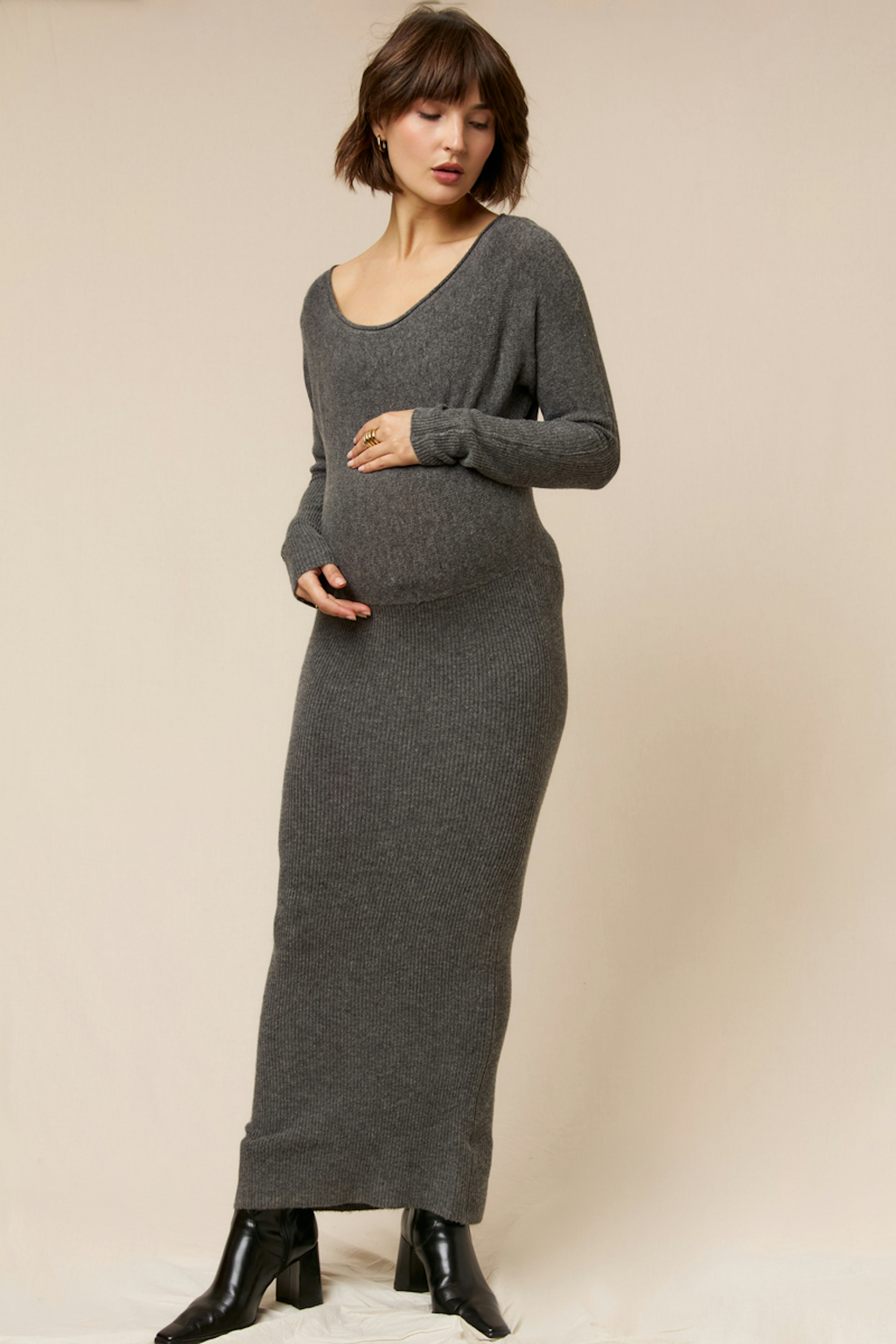 Portez cette robe avec des bottes en cuir et un chapeau doux pour une allure chic hivernale. • Robe longue en tricot • Épaules dénudées • Manches longues • Coupe ajustée • Style côtelé élégant