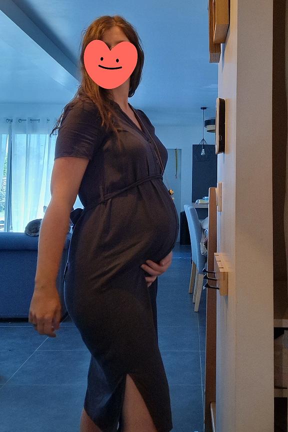 โJolie robe fluide avec bouton sur tout le devant de la robe. รchancrรฉe sur les cรดtรฉs, trรจs agrรฉable ร porter (Enceinte 6mois)โ