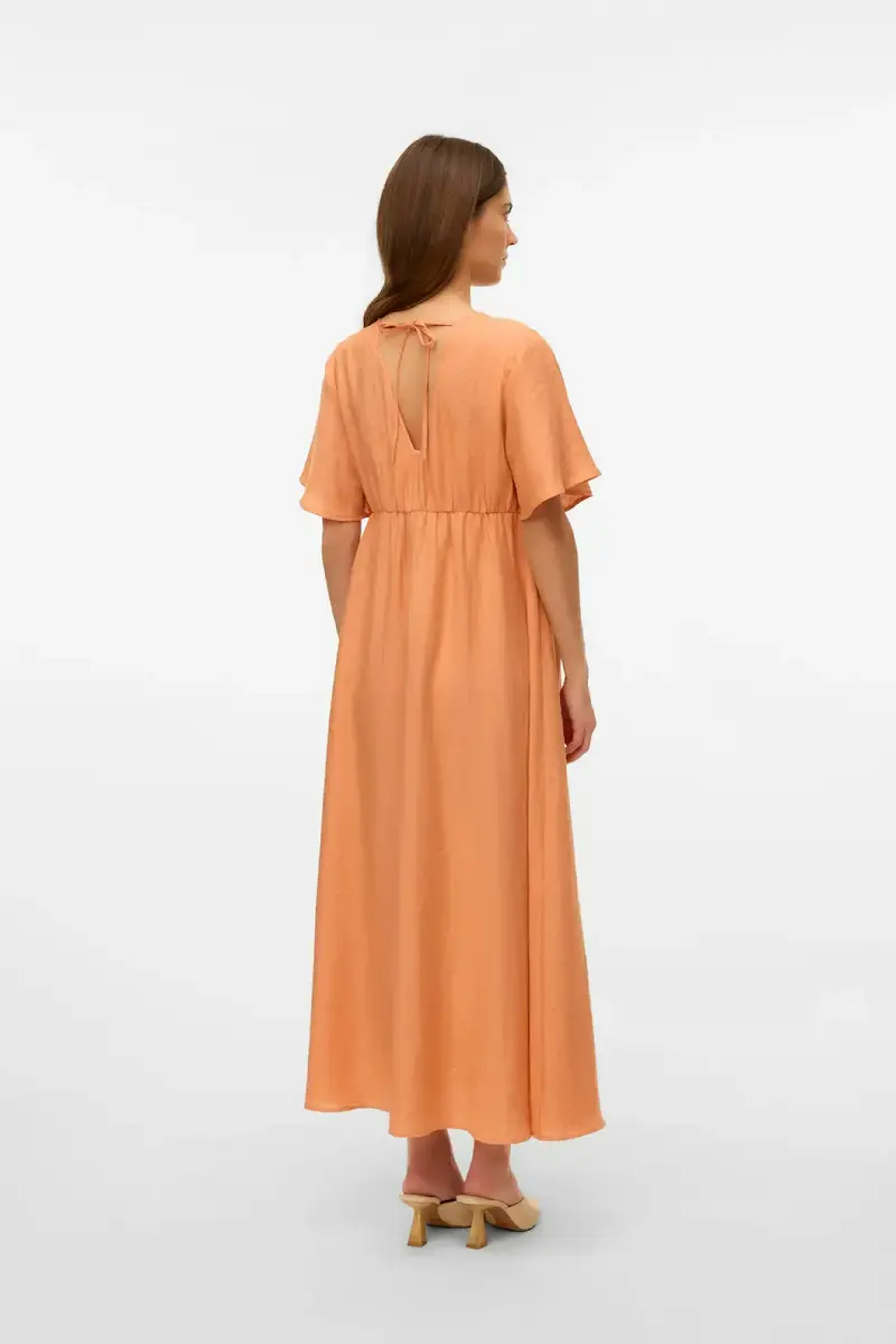 Associez cette robe fluide avec des sandales en cuir pour une allure estivale et confortable. Parfaite pour une balade ensoleillée. • Robe ample • Taille empire • Manches courtes • Longueur midi • Dos noué