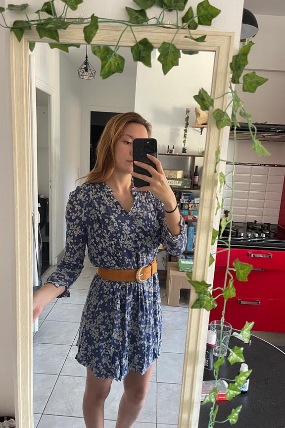 โRobe facile ร porter avec de jolis motifs et couleurs, lรฉgรจre, un peu courte si elle est portรฉe avec une ceintureโ