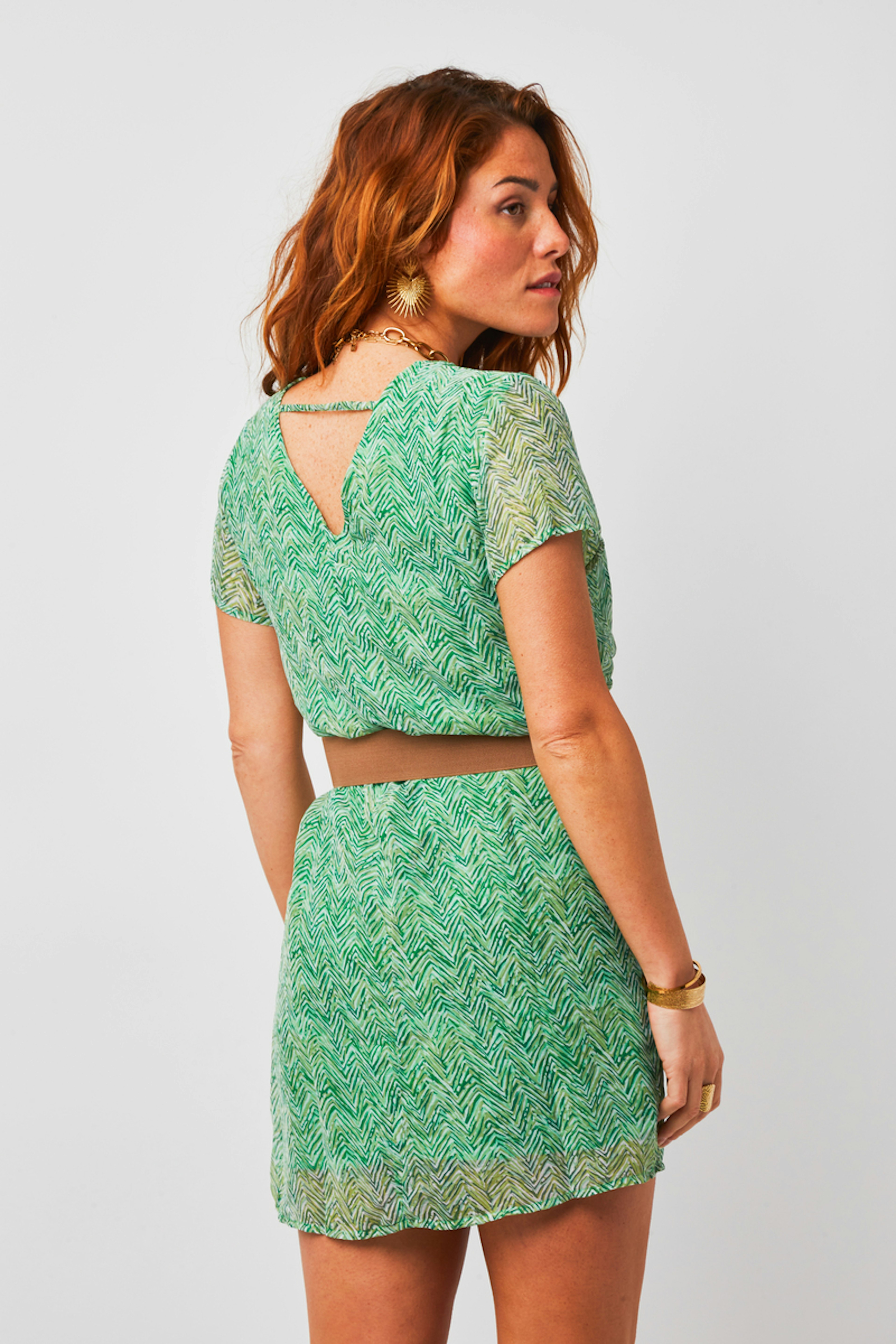 โข Col en V โข Avec ceinture โข Dรฉcolletรฉ bordรฉ โข Motifs all-over โข Tissu fluide