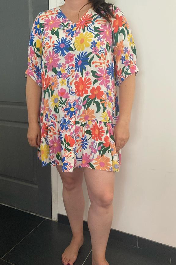 โRobe courte, je mesure 1m65 et je la trouve trop courte. Sinon, jolies couleurs.โ