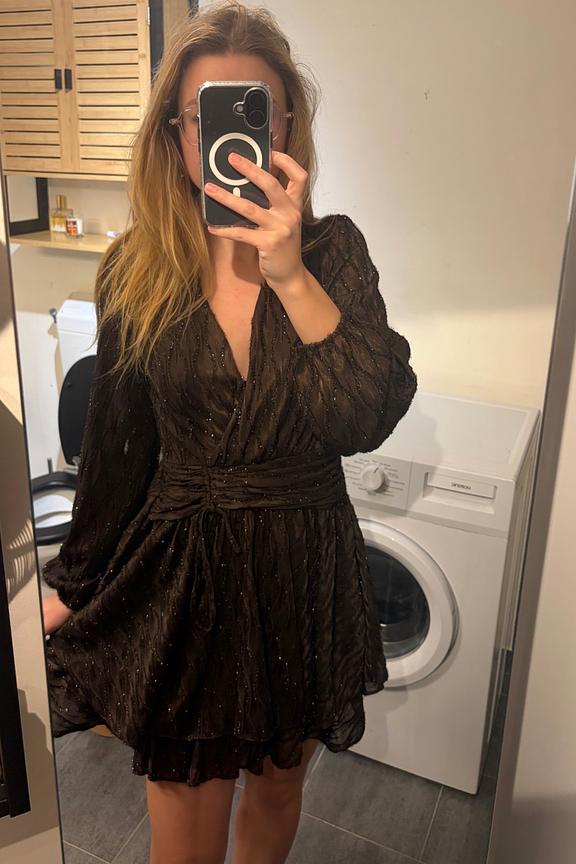 “A porter pour les fêtes, trop pailleté pour porter au quotidien. Matière qui gratte. Super coupe et couleur. Bonne longueur”