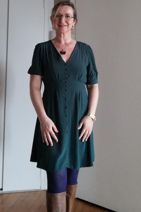 โ€œJolie robe. Un peu courte mais parfaite avec des collants opaques. Je l'adoreโ€