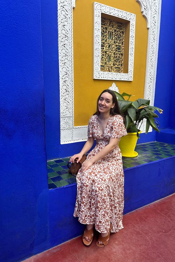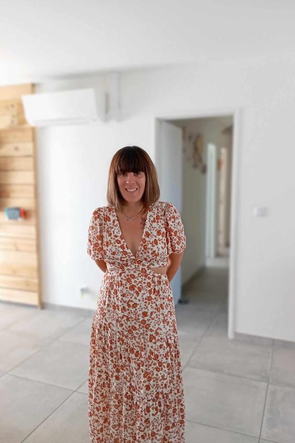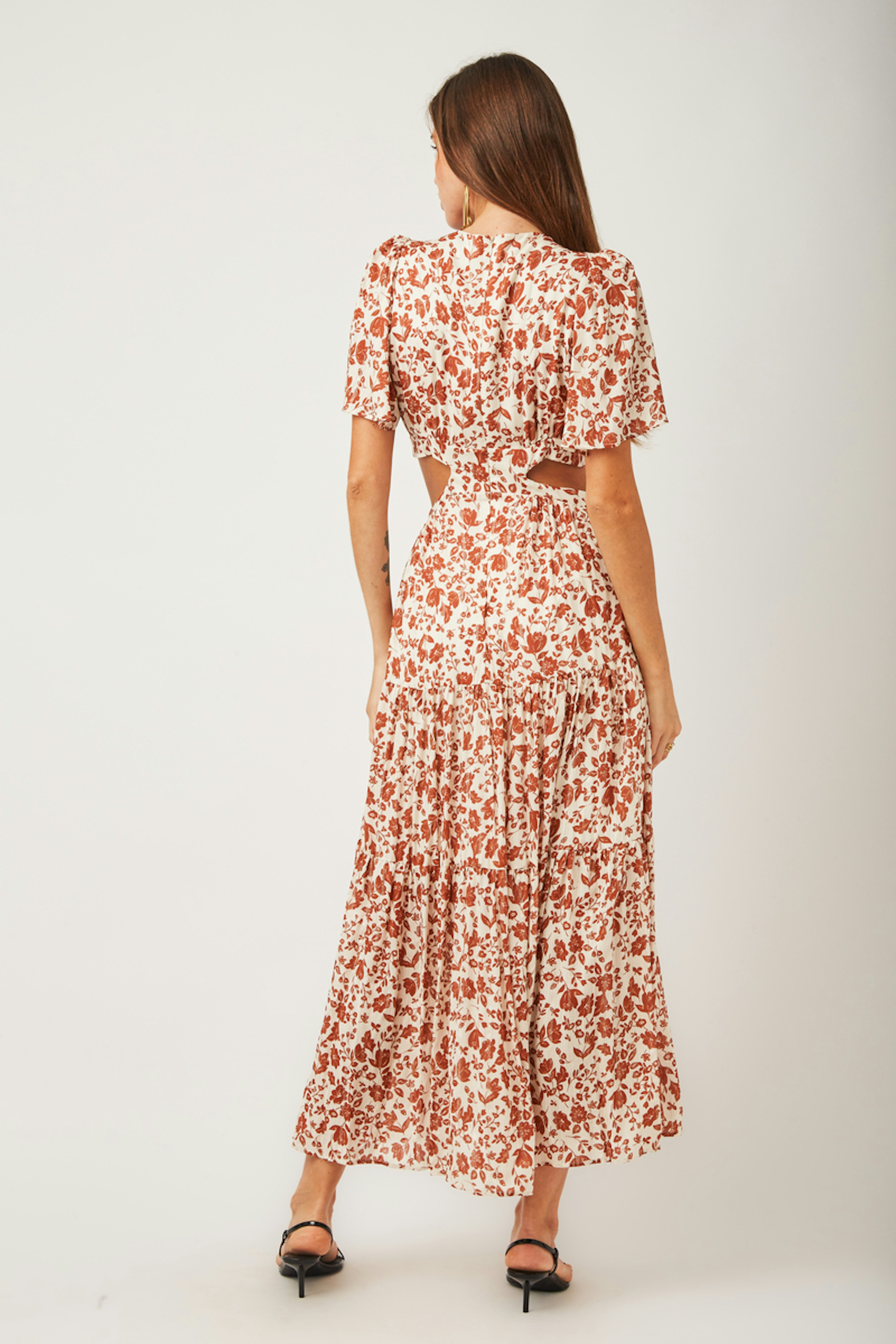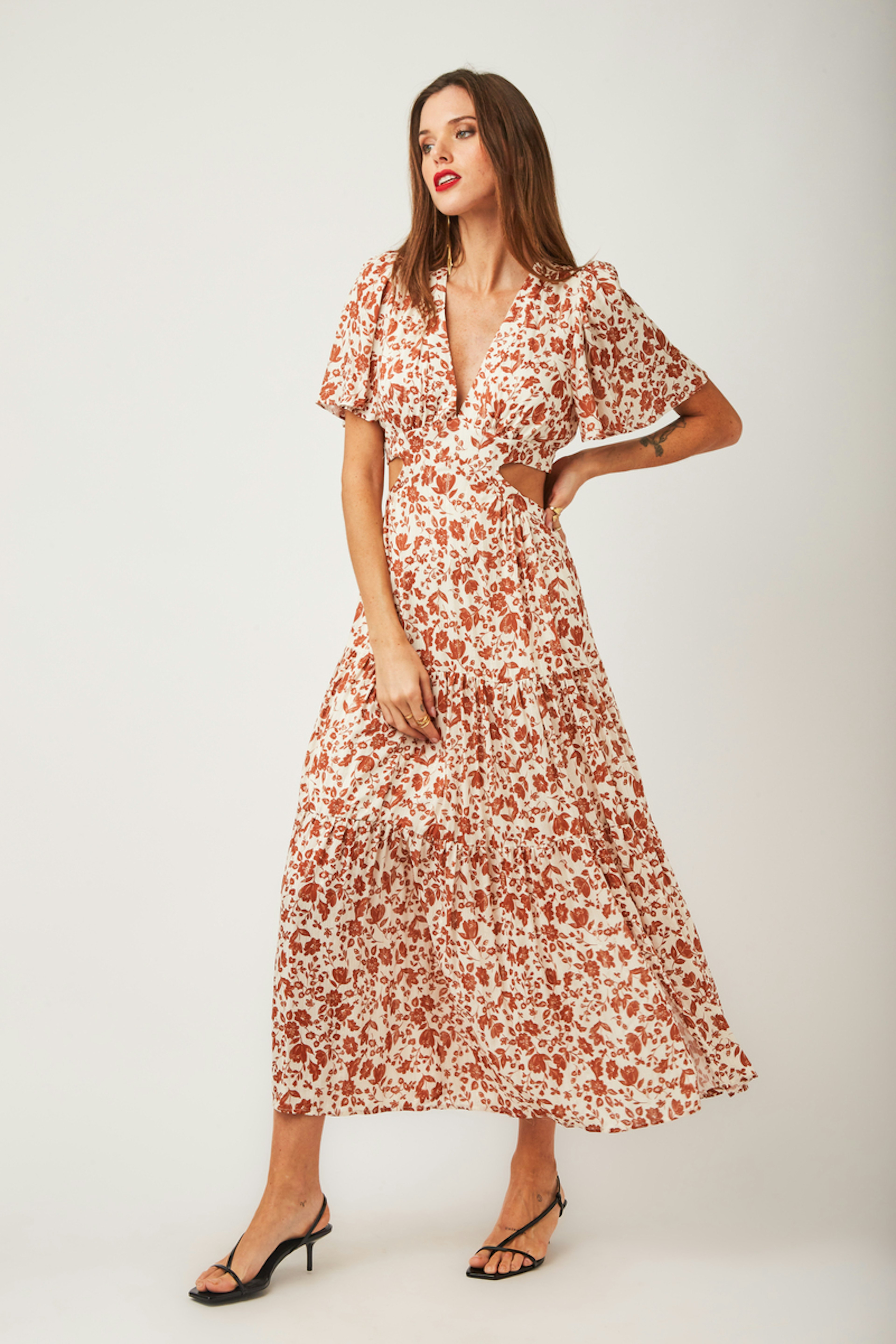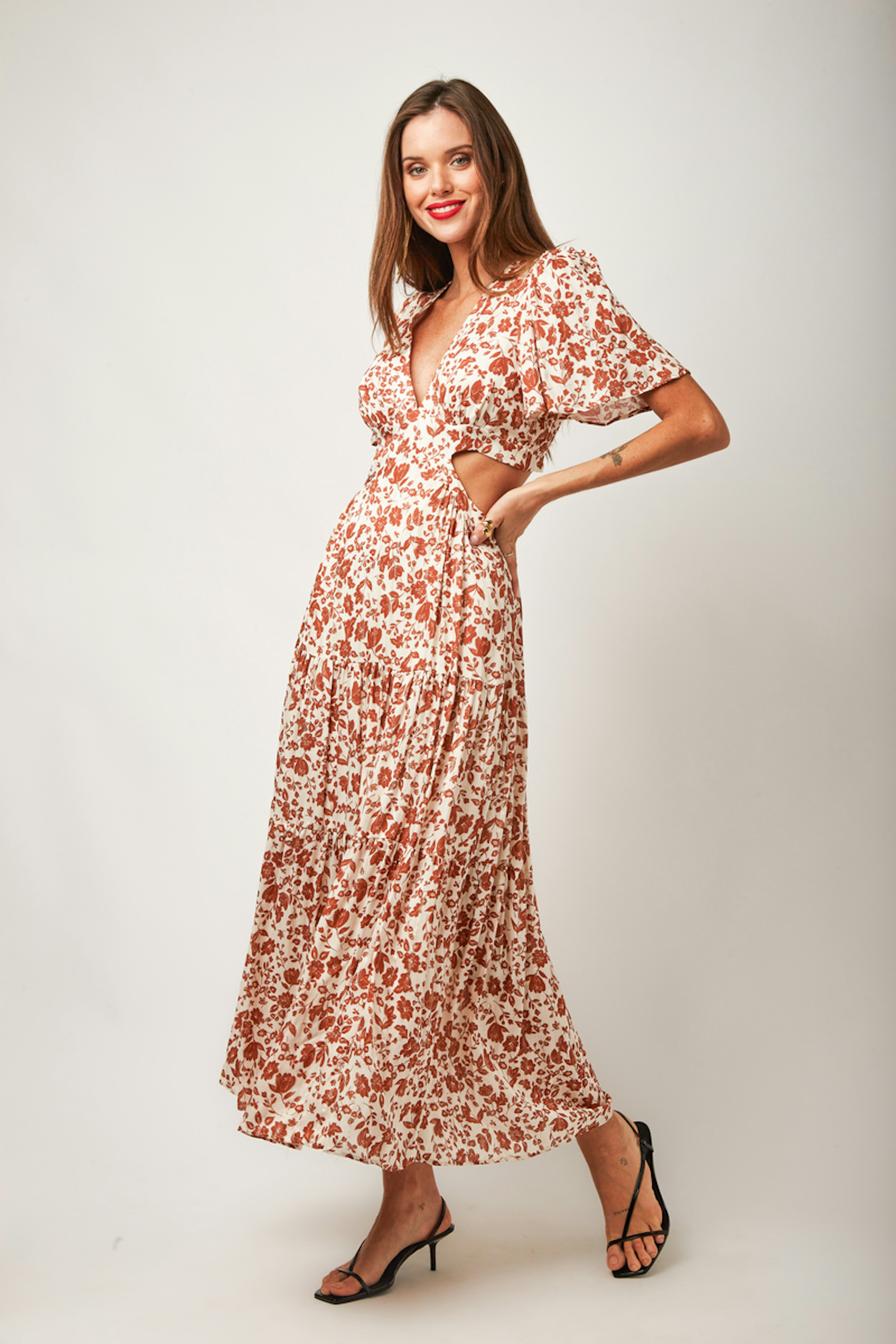 โข Robe longue Nelly โข Manches courtes โข Dรฉcolletรฉ en V โข Motif floral โข Ouvertures sur les cรดtรฉs
