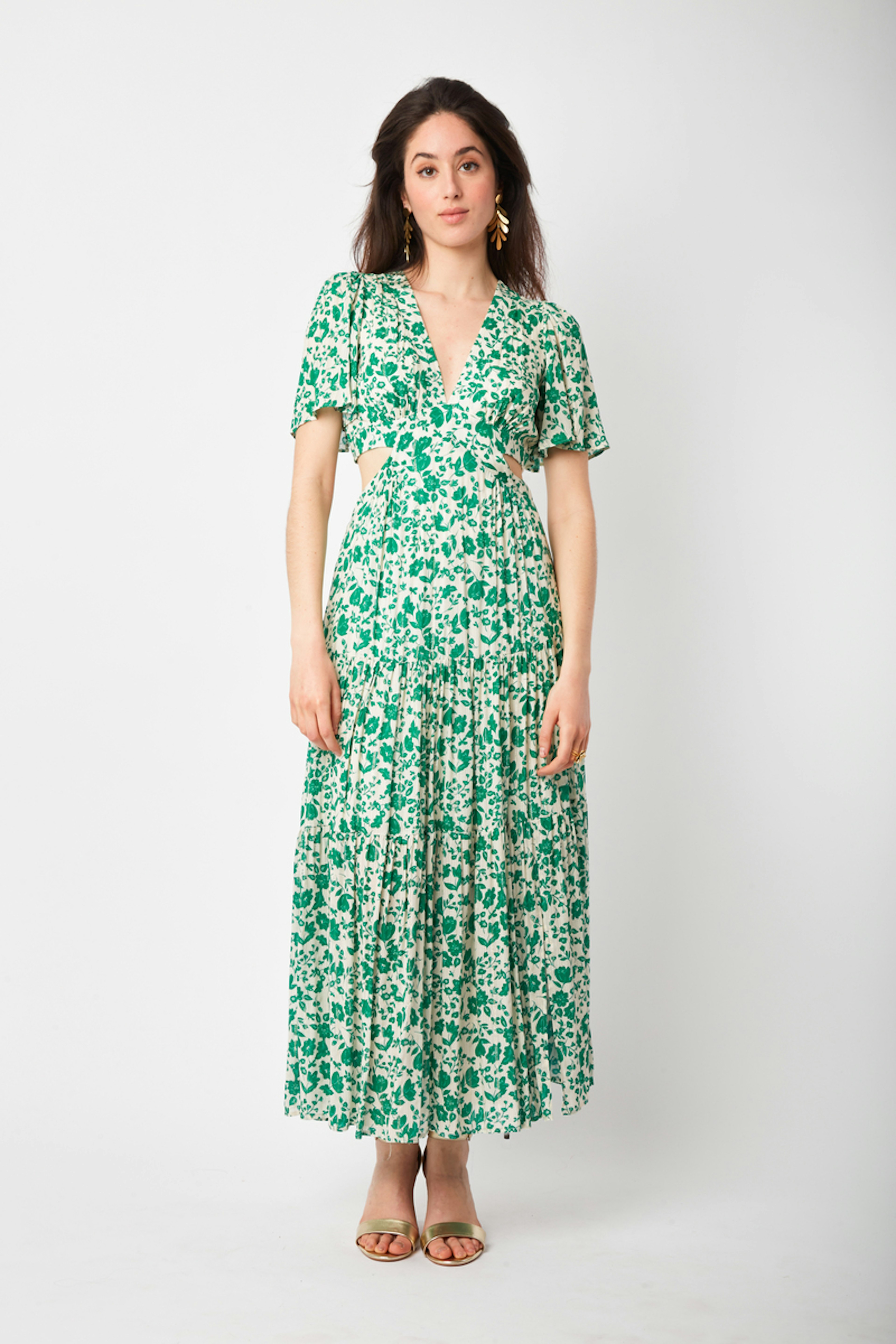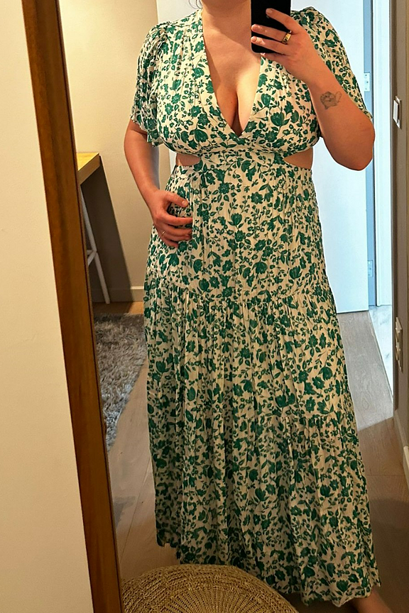 Craquez pour cette robe fleurie d'รฉtรฉ, idรฉale avec des sandales dorรฉes. Parfaite pour toute saison. โข Robe ร fentes latรฉrales โข Manches courtes volantรฉes โข Taille cintrรฉe รฉlastique โข Jupe asymรฉtrique โข Motif floral