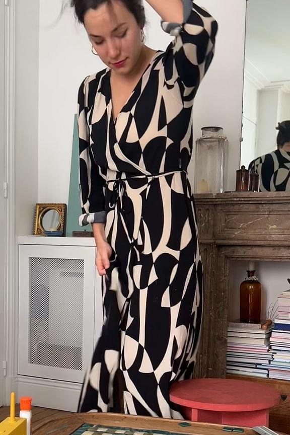Accueillez la douceur de l'hiver avec élégance en associant cette robe à des bottines et un manteau structuré. Parfait pour toute saison grâce à son style intemporel! • Robe cache-cœur • Manches longues • Ceinture à nouer • Jupe fluide • Motif géométrique