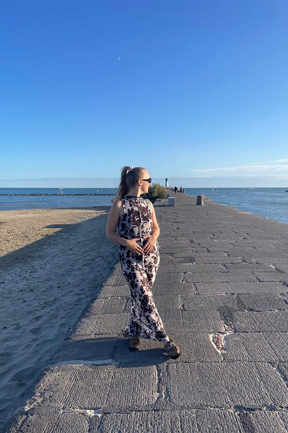Ajoutez une veste en cuir et des bottines pour un look urbain et audacieux cet hiver. • Robe longue imprimé animalier • Col licou • Coupe ajustée • Motif imprimé • Tissu semi-transparent