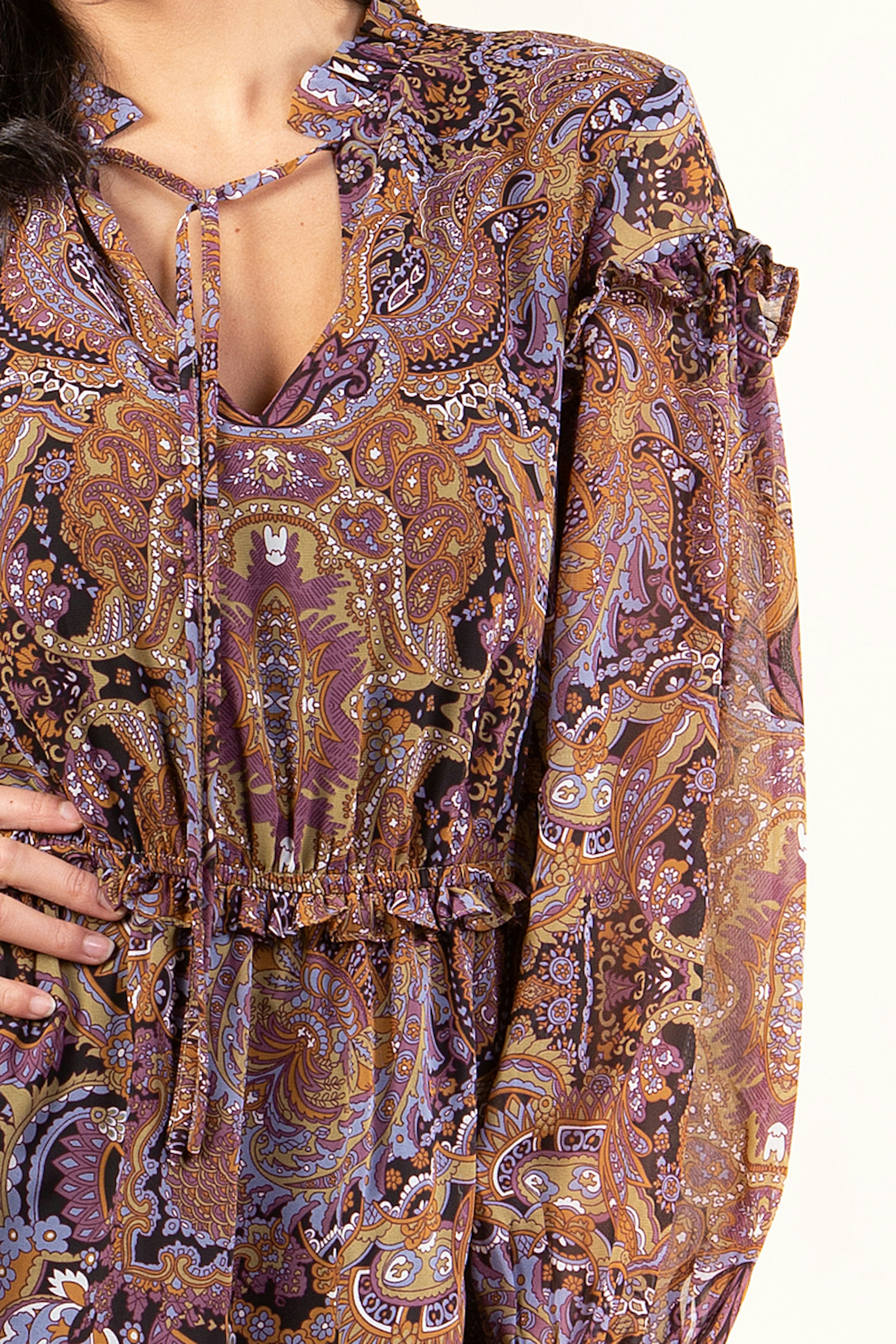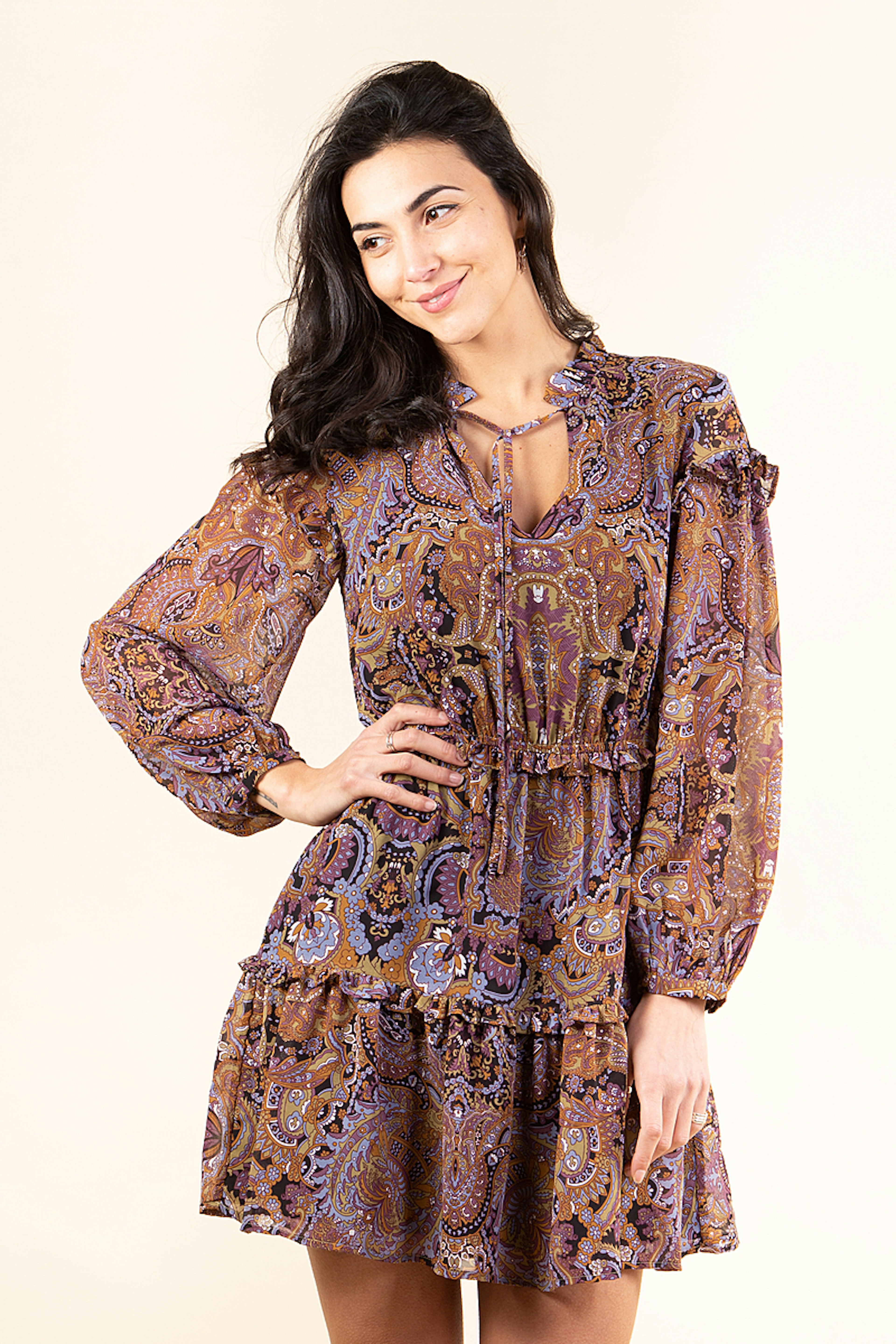 La robe Objmarcin inspiration bohรจme de part son motif, sa coupe et sa couleur est sublime. Ajoutez un perfecto noir pour ajouter une touche rock.
