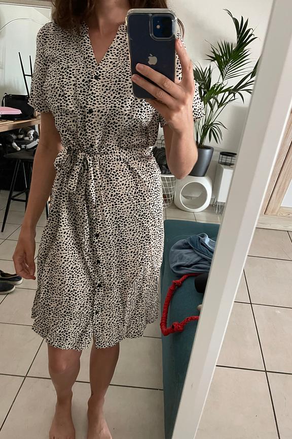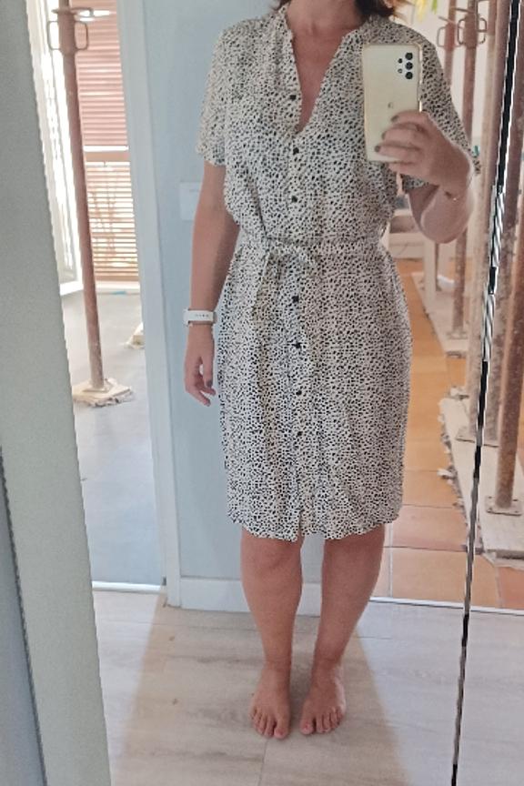 โข Robe imprimรฉe โข Manches courtes โข Col ร revers โข Boutons sur le devant โข Longueur au-dessus du genou