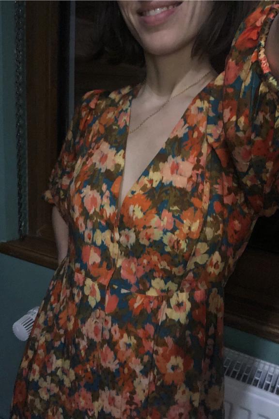 Associe cette robe à des bottines en daim et une veste en jean pour un look hivernal chic. • Robe courte • Manches bouffantes 3/4 • Décolleté V • Haut ajusté et jupe ample • Fermeture avec boutons devant