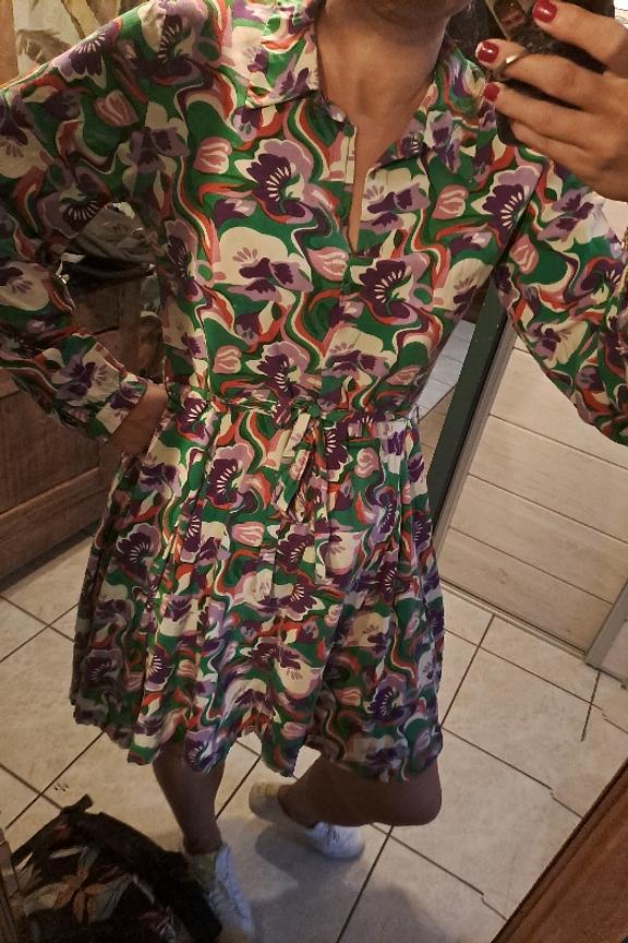 Sรฉduisante avec sa coupe patineuse, la robe courte OKAPIE s'invite avec douceur dans notre dressing An'ge. Dotรฉe d'un col chemise et d'une ceinture, elle s'ajuste parfaitement ร votre morphologie. Tissu fluide et lรฉger Coupe ร ajuster ou non Longueur genoux Col chemise boutonnรฉ Manches longues Volants sur le bas Finitions surpiquรฉes Imprimรฉ exclusif Longueur du produit depuis l'รฉpaule pour la taille S : 89 cm. Le mannequin porte une taille S.