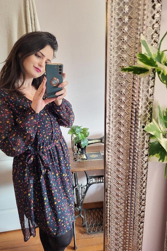 โTrรจs joli motif, la robe est confortable. Doublรฉe, elle convient pour les journรฉes encore fraiche du printemps. Elle est un peu large mais la ceinture permet de l'ajuster comme on veut.โ