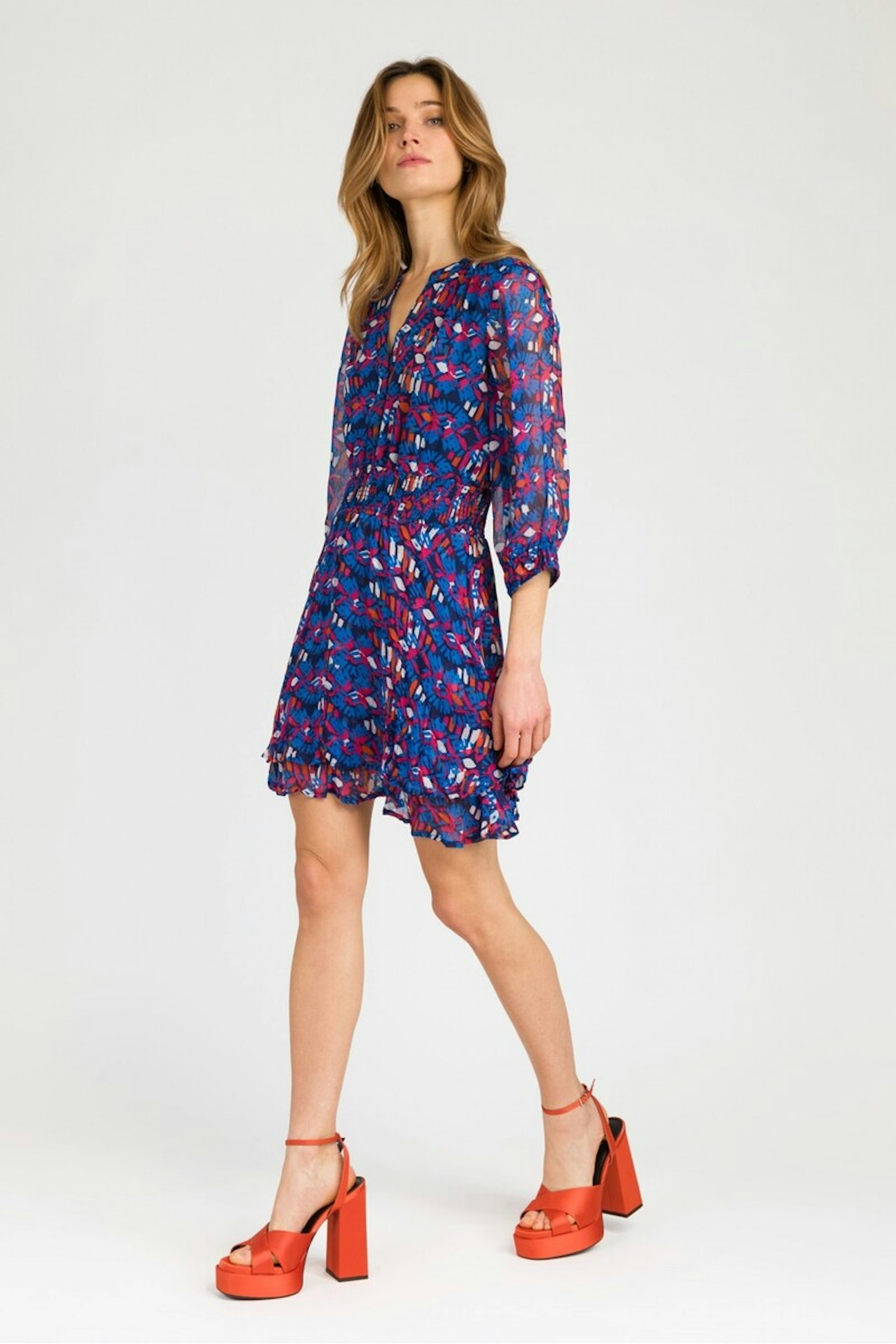 โข La robe courte Ormand, imprimรฉe au tissu lรฉger en voile ร l'aspect crรฉpon se dรฉmarque par sa coupe ajustรฉe au niveau de la taille et ses imprimรฉs tendances ! โข Une robe facile ร porter et ร avoir absolument dans son dressing โข Tissu fluide et lรฉger en voile โข Coupe ajustรฉe ร la taille par un large รฉlastique โข Longueur genoux โข Col tunisien โข Manches longues en voile โข Volants en bas du produit โข Doublure โข Finitions surpiquรฉes โข Imprimรฉ exclusif โข Longueur du produit depuis l'รฉpaule pour la taille S : 88 cm