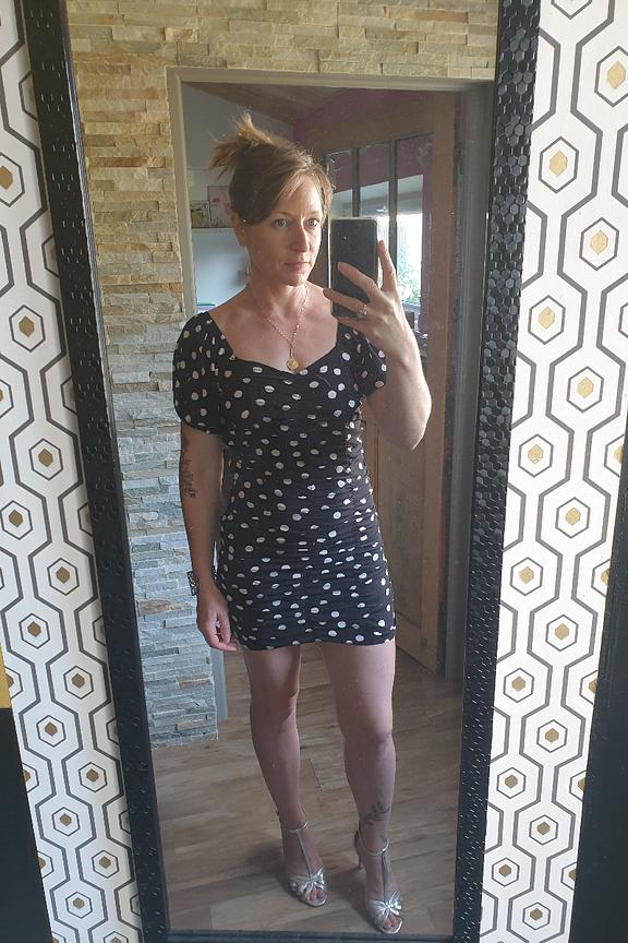 “J aipris une taille haut dessus comme recommandé mais je pense que le 36 aurait été mieux Belle robe et sexi!”