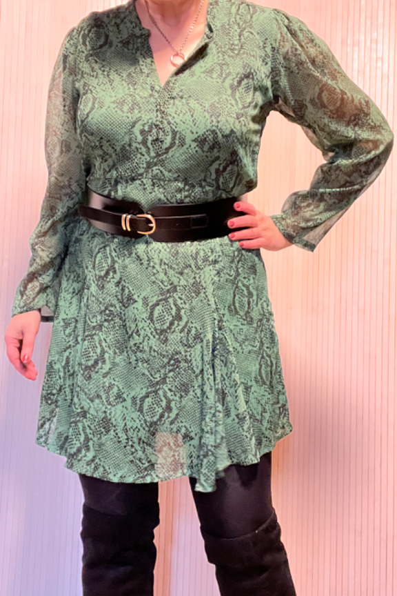 OTILA une robe courte parfaite avec une coupe fรฉminine et ajustรฉe ! - Tissu aรฉrien et lรฉger - Coupe ajustรฉe ร la taille - Longueur genoux - Col tunisien - Ceinture รฉlastique dans le dos - Manches longues transparentes - Finitions surpiquรฉes