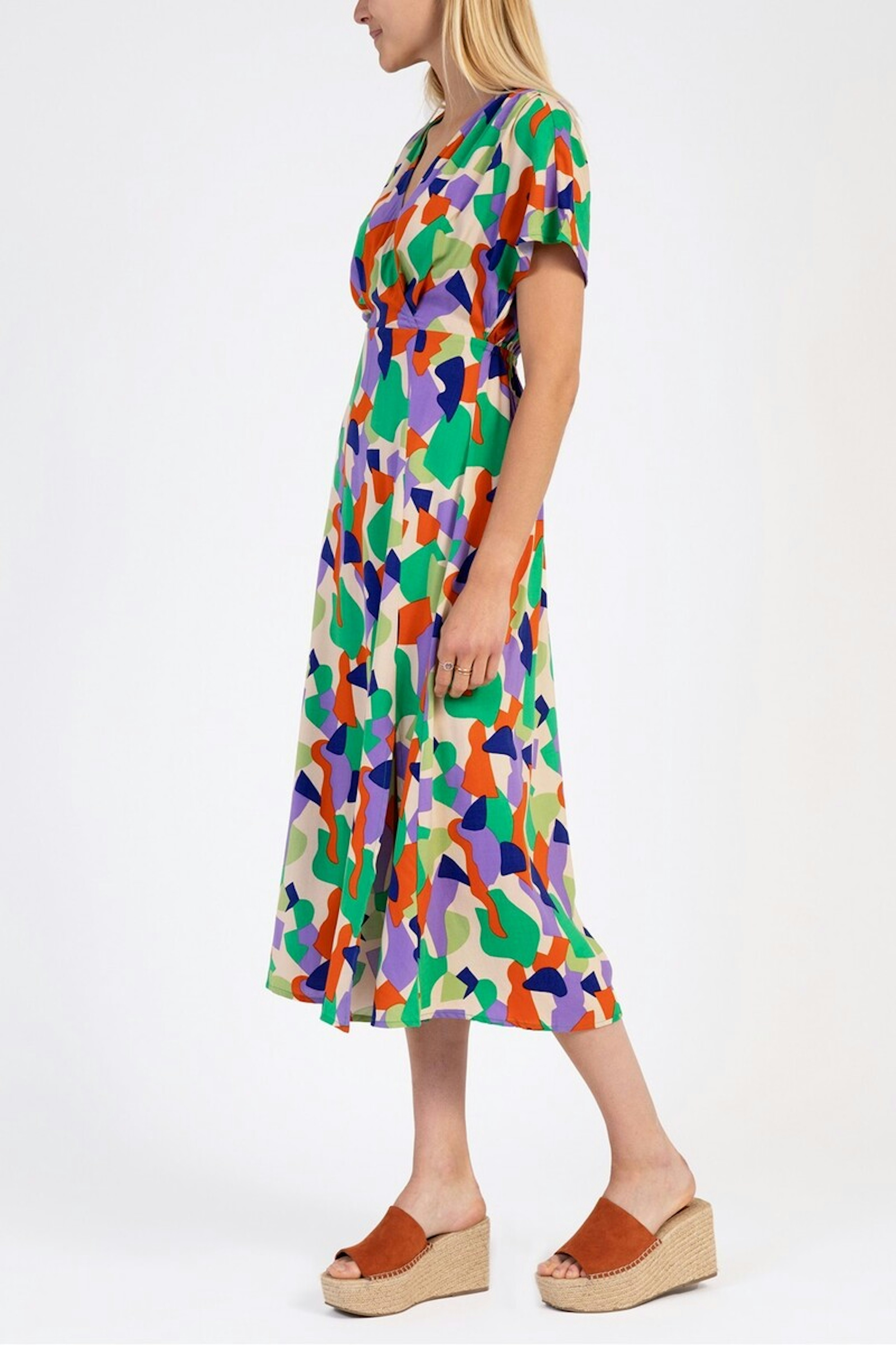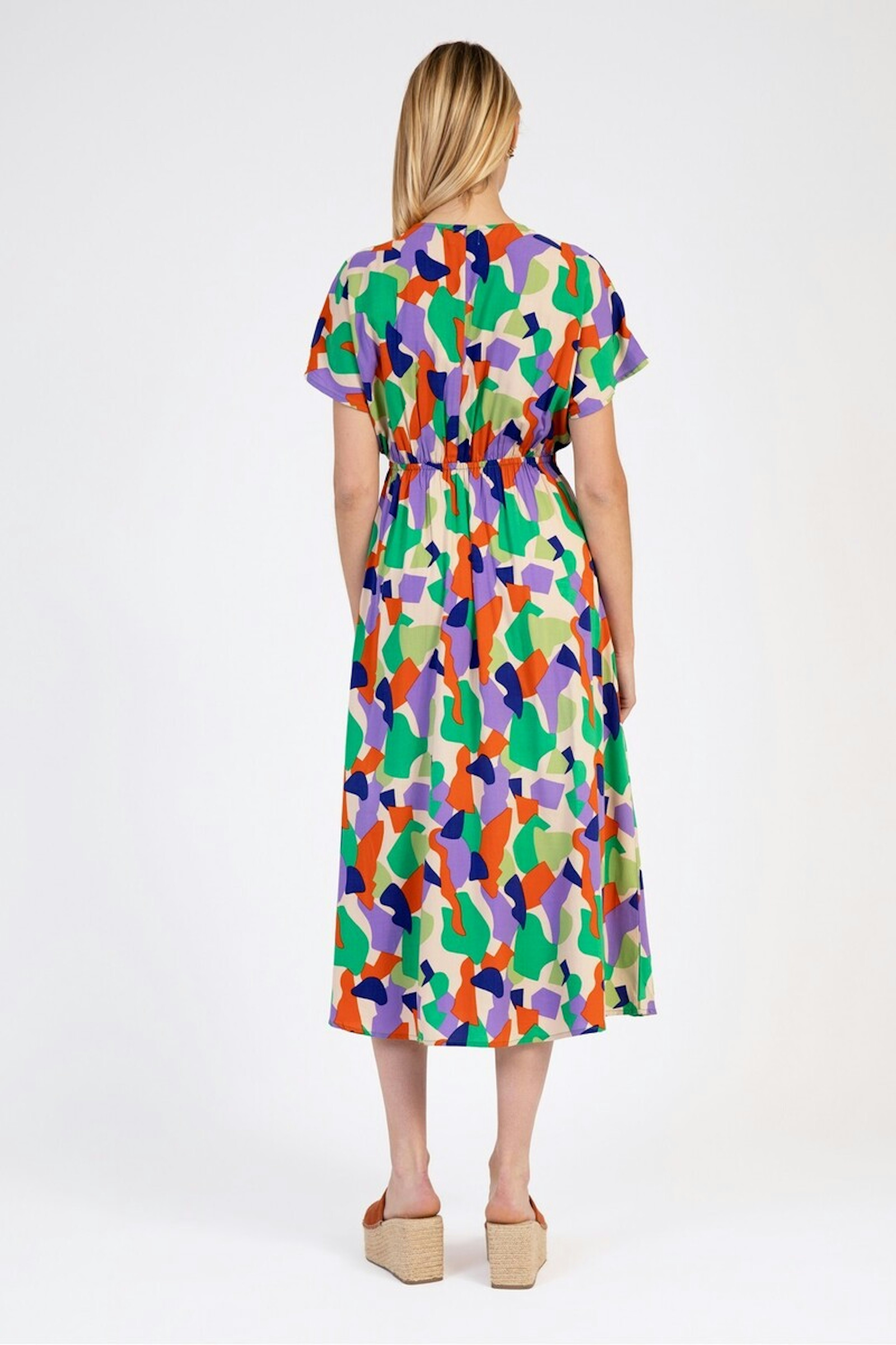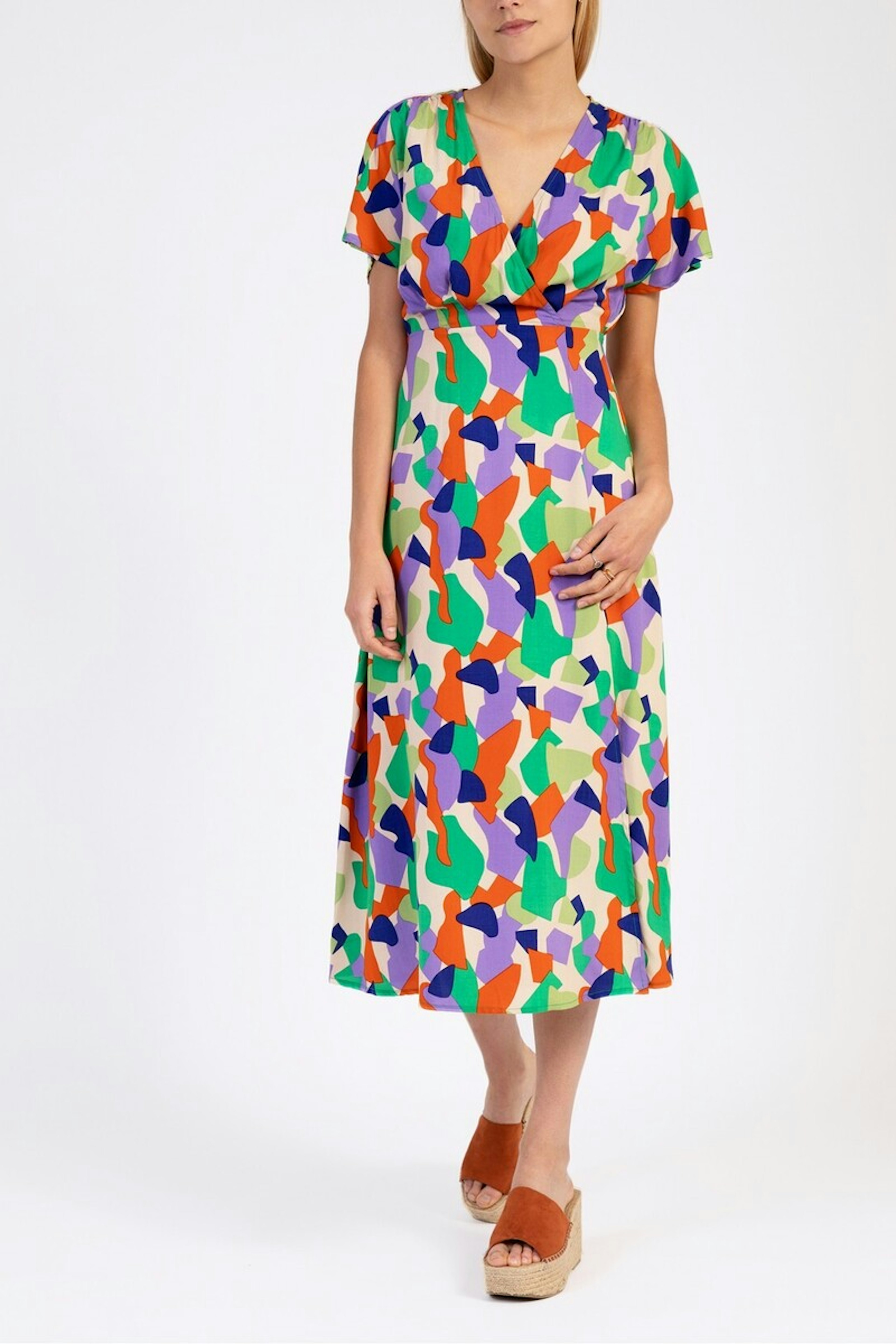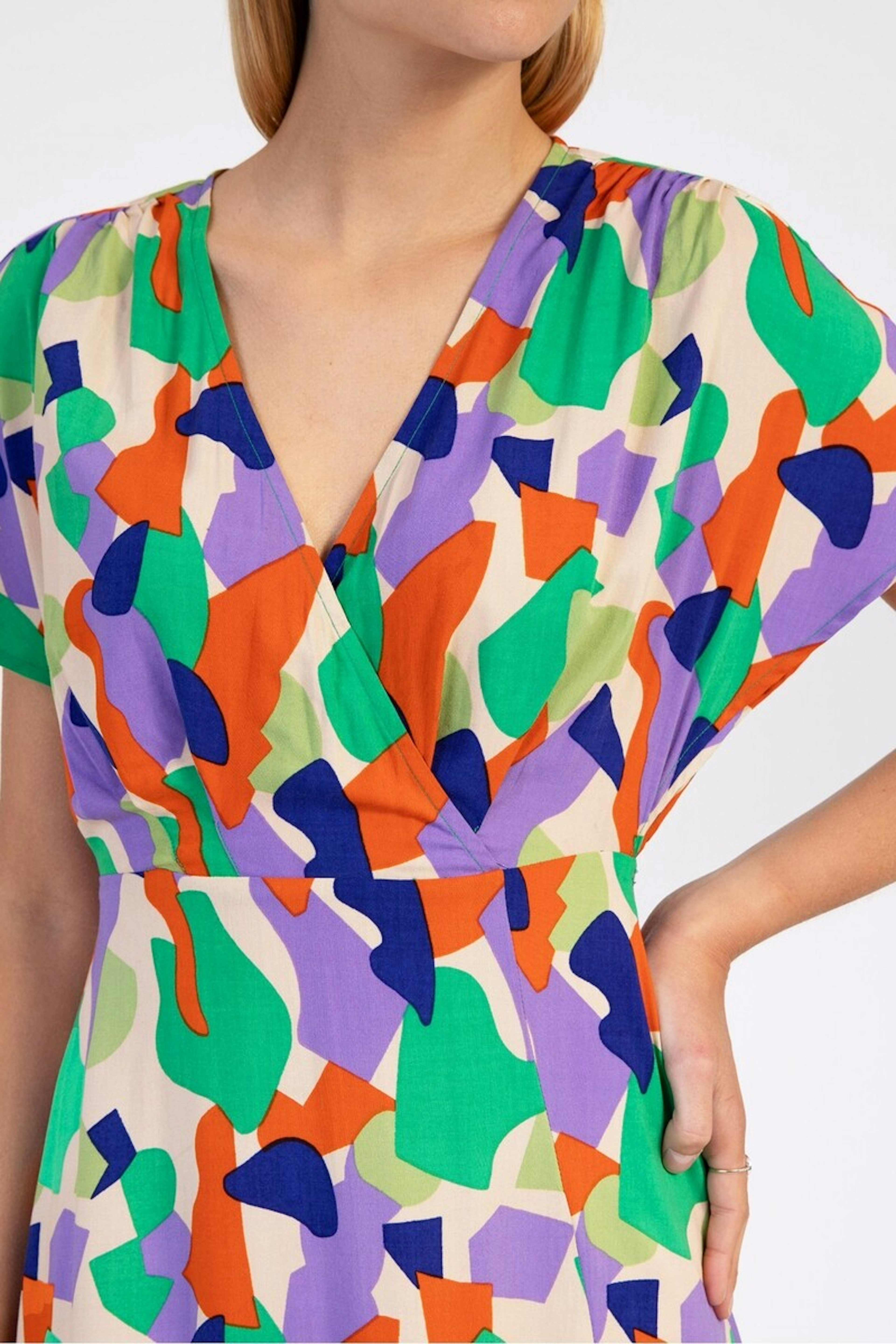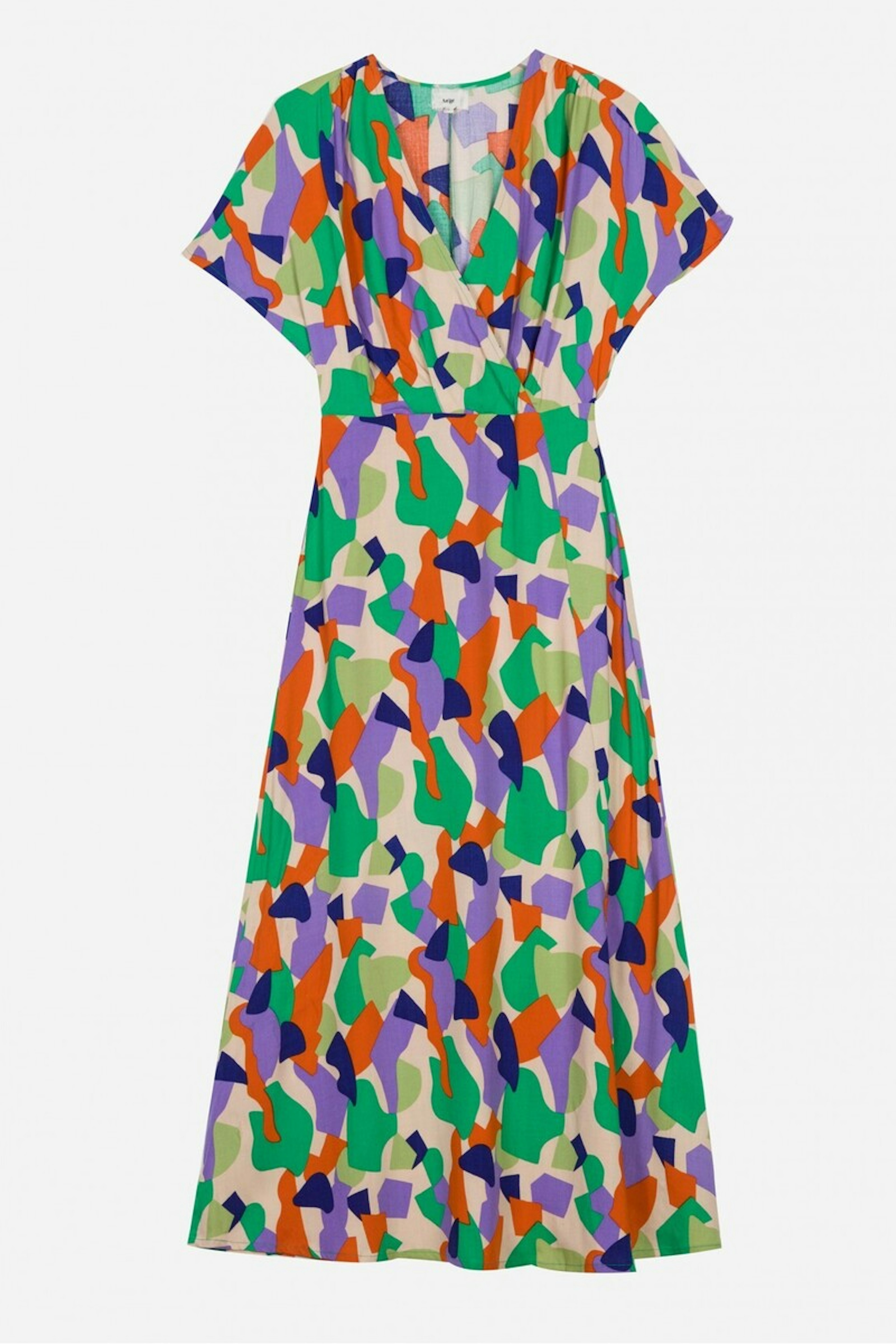 La robe midi ร l'encolure cache-cลur se dรฉcline en version imprimรฉe. Dรฉcouvrez OZAKA en viscose, une coupe midi, une longue fente ultra fรฉminine et des imprimรฉs dessinรฉs dans nos ateliers. โข Tissu fluide โข Coupe ajustรฉe sous la poitrine โข Longueur midi โข Col V cache-cลur โข Manches courtes amples et tombantes โข Elastique dans le dos โข Dรฉtails froncรฉs sur la robe โข Fente sur bas cรดtรฉ โข Finitions surpiquรฉes Longueur du produit depuis l'รฉpaule pour la taille S : 124 cm. Le mannequin porte une taille S.