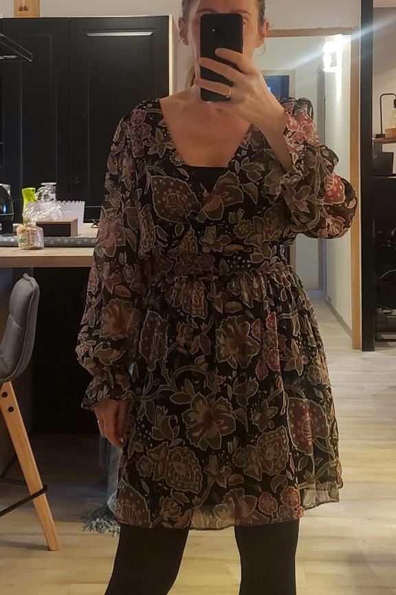 โ€œJolie robe, tissu fluide et agrรฉable, mais je n'ai pas pu la porter car la coupe ne correspondait pas ร  ma morphologie. Trรจs serrรฉ ร  la taille, et trop grand au niveau de la poitrine.โ€