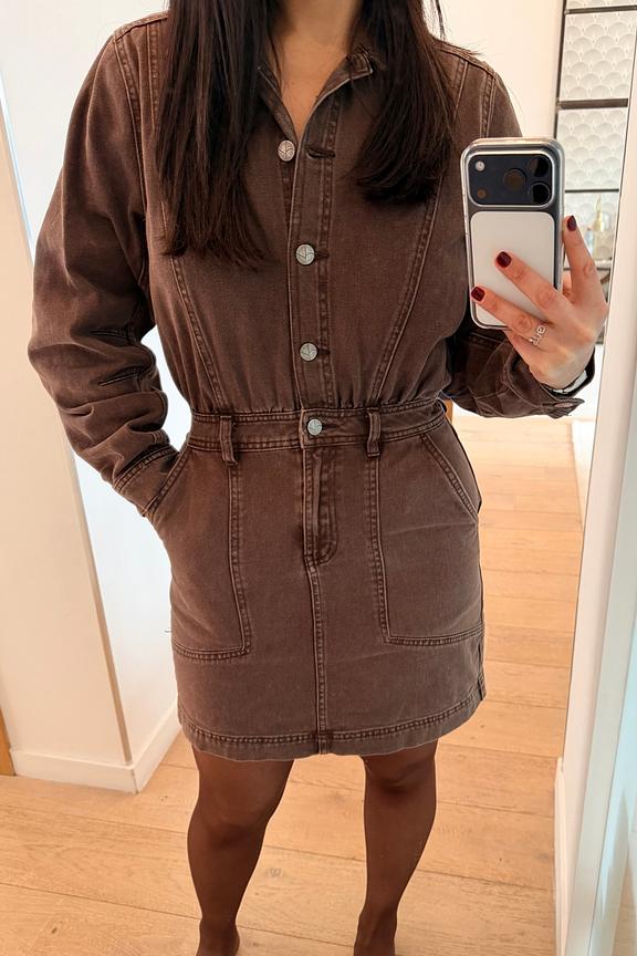Portez cette robe marron avec des bottines pour un look chic et décontracté. Parfaite en toute saison. • Robe en coton • Coupe regular • Décolleté discret • Col chemise • Poches avant pratiques