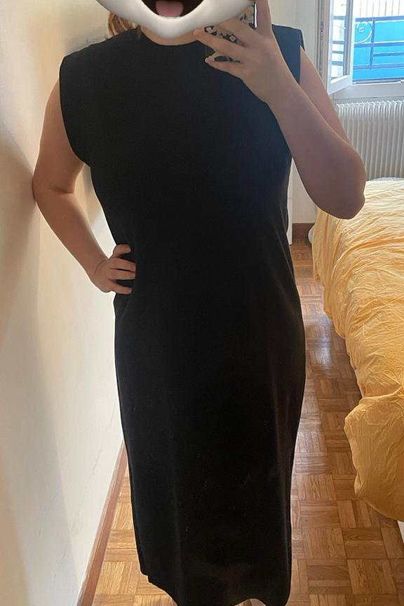 Associez cette robe noire avec des sandales à talons et des bijoux minimalistes pour une allure chic et moderne. Parfait pour toutes les saisons. • Robe longue en coton • Coupe droite • Sans manches • Fente arrière • Découpe en forme de cœur au dos