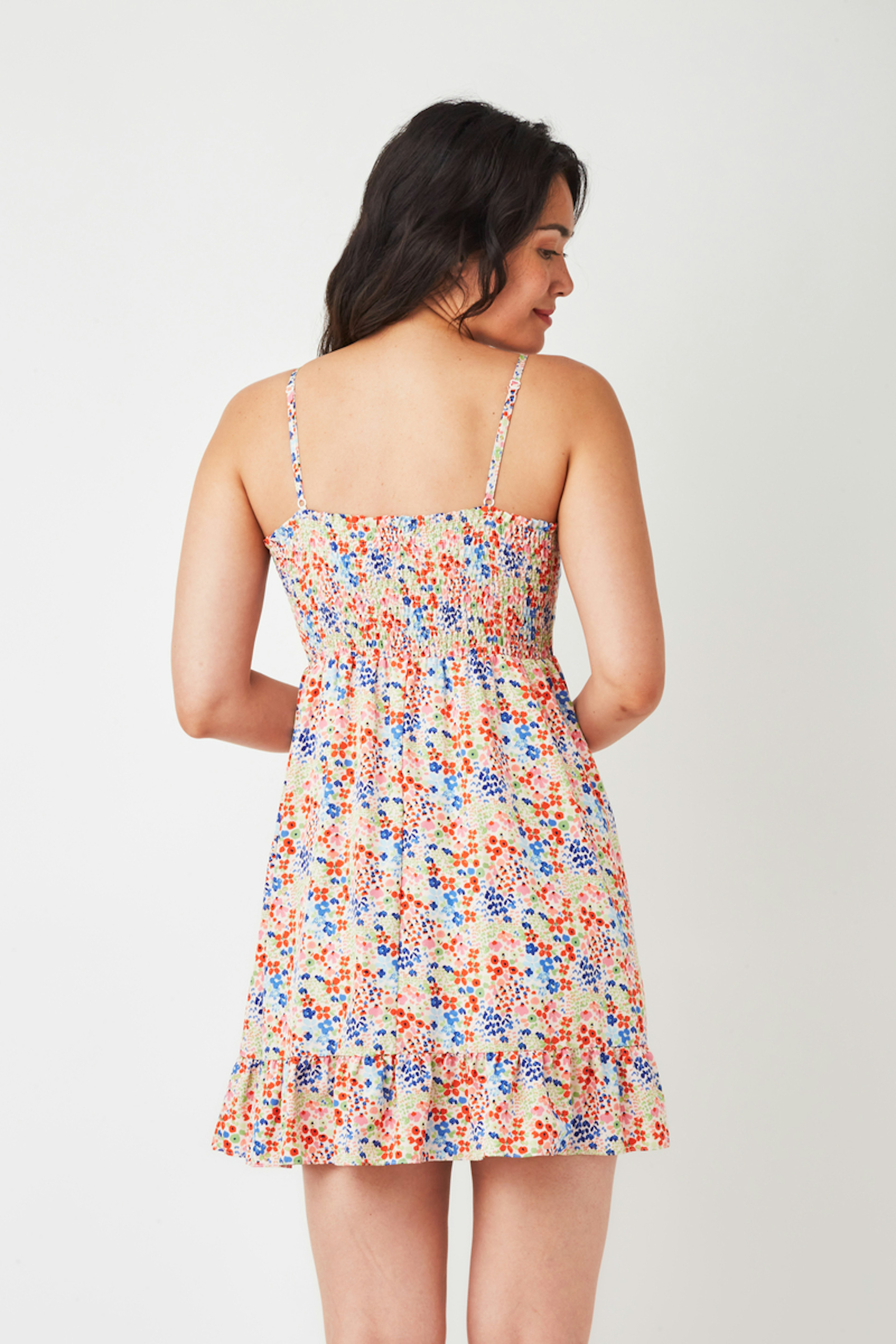 La robe Phebe est lumineuse et florale. De quoi vous apporter de la bonne humeur tout l'รฉtรฉ ! โข Ouverture boutonnรฉe โข Boutons recouverts โข Fines bretelles