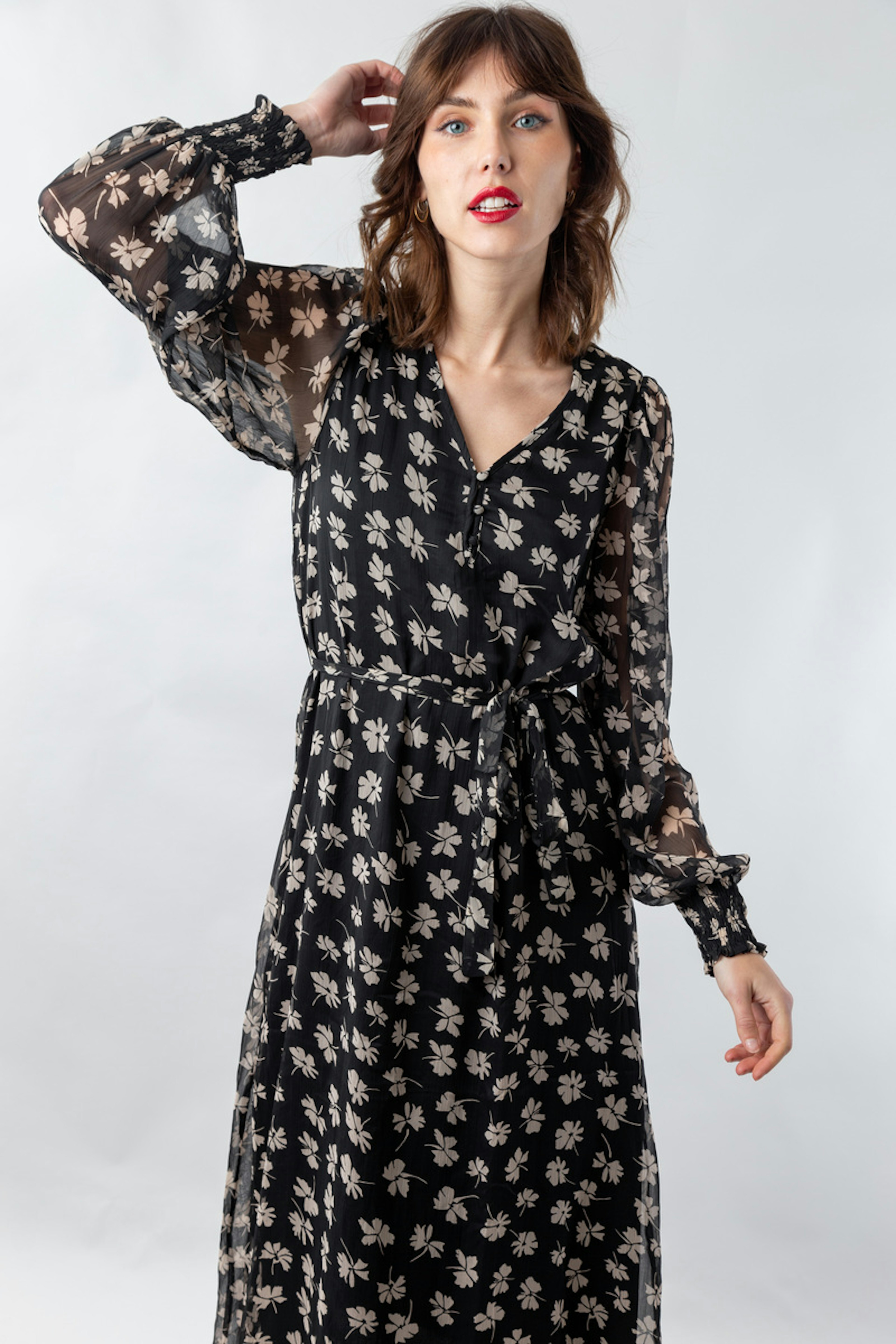 โข Robe sur mesure โข Poignets smockรฉs โข Doublure polyester โข Longueur cheville โข Fermeture : Ceinture qui accentue la taille โข Manches ballon โข Une robe longue par jour รฉloigne toutes les crises. Les robes longues sont ร la fois รฉlรฉgantes et fรฉminines, et celle-ci ne fait pas exception โข Portez la avec des sandales plates pour un look d'รฉtรฉ simple et aรฉrรฉ ou ajoutez des escarpins ร talons pour un look de soirรฉe tendance โข Encolure en V pour sublimer votre dรฉcolletรฉ