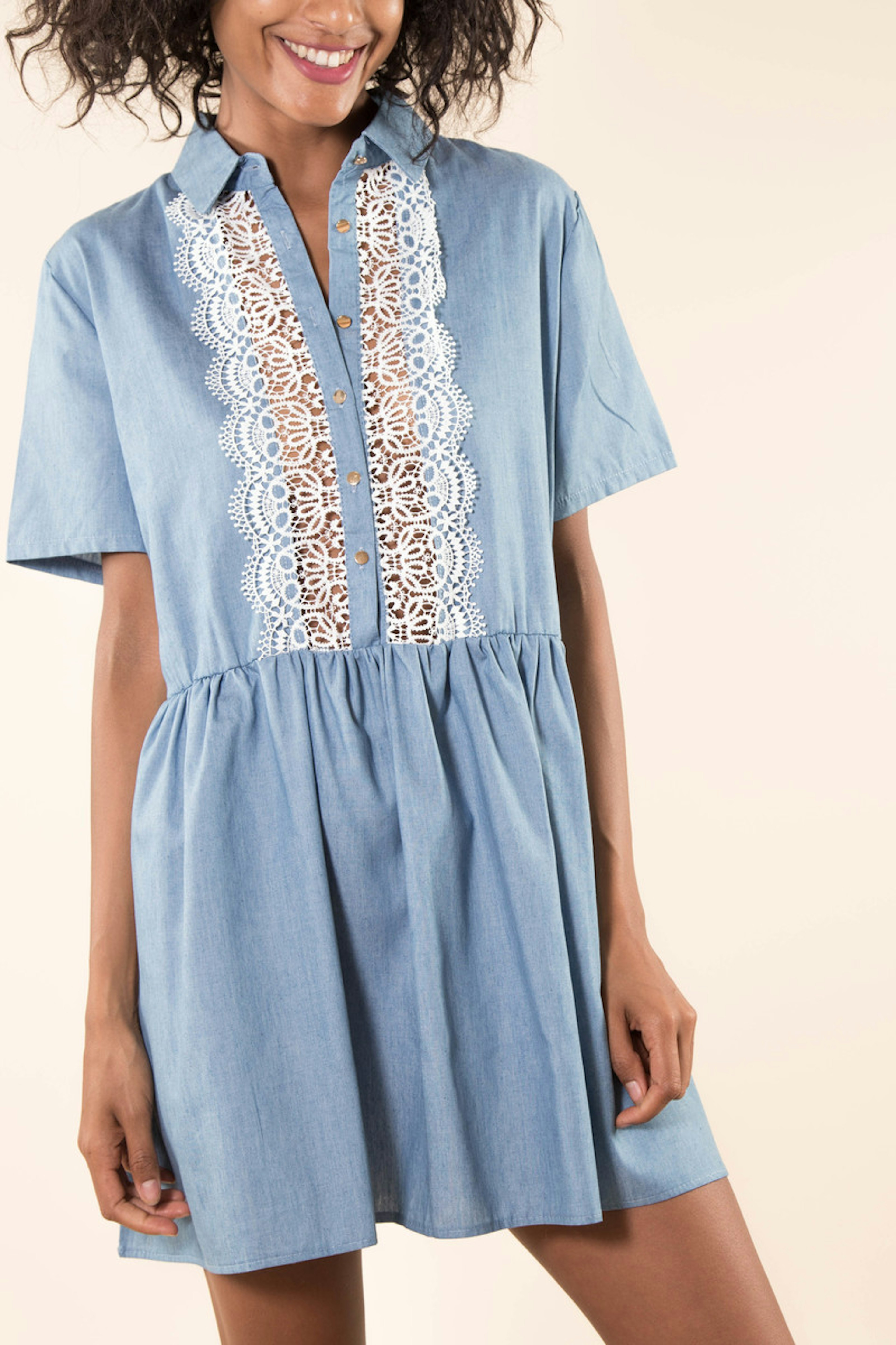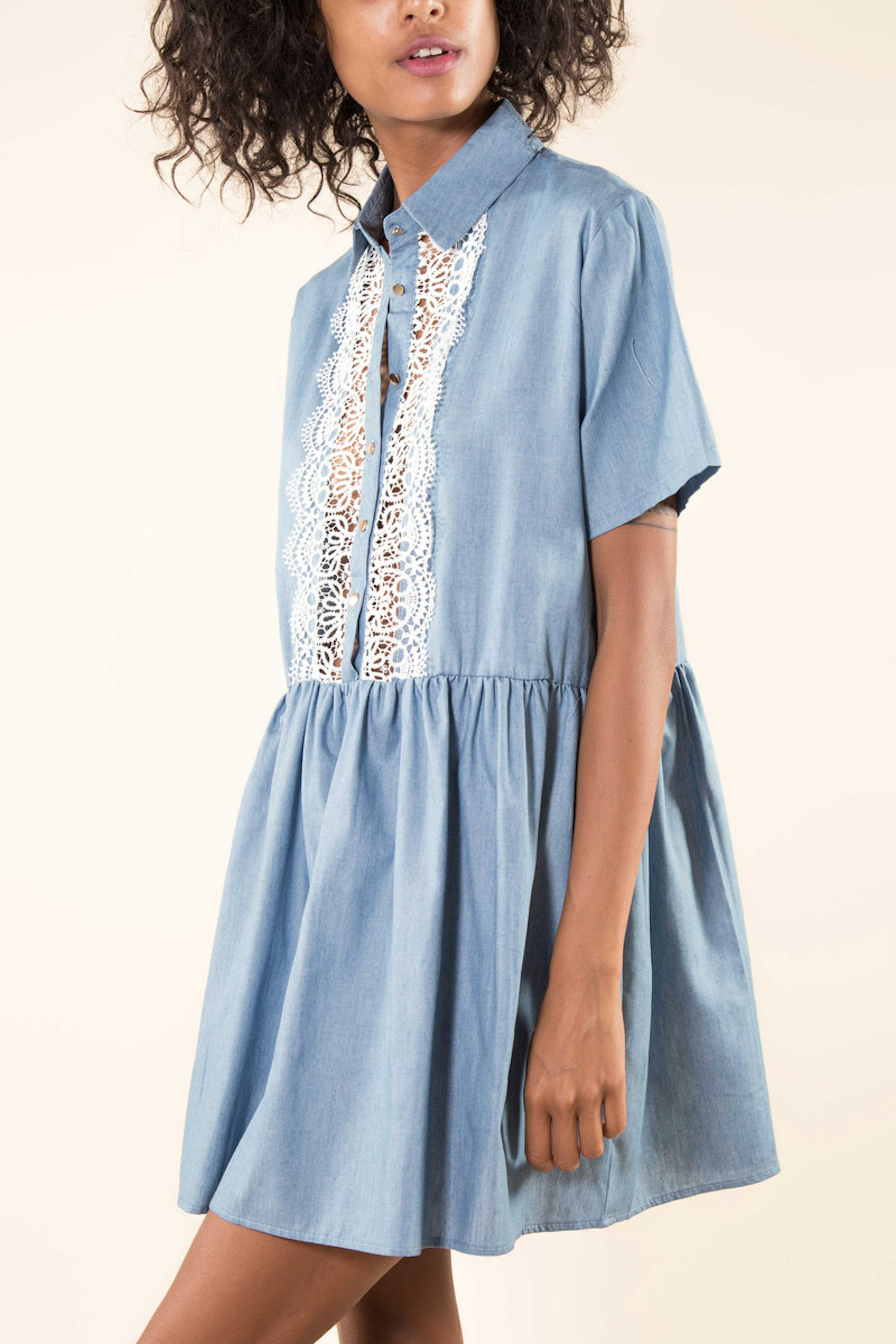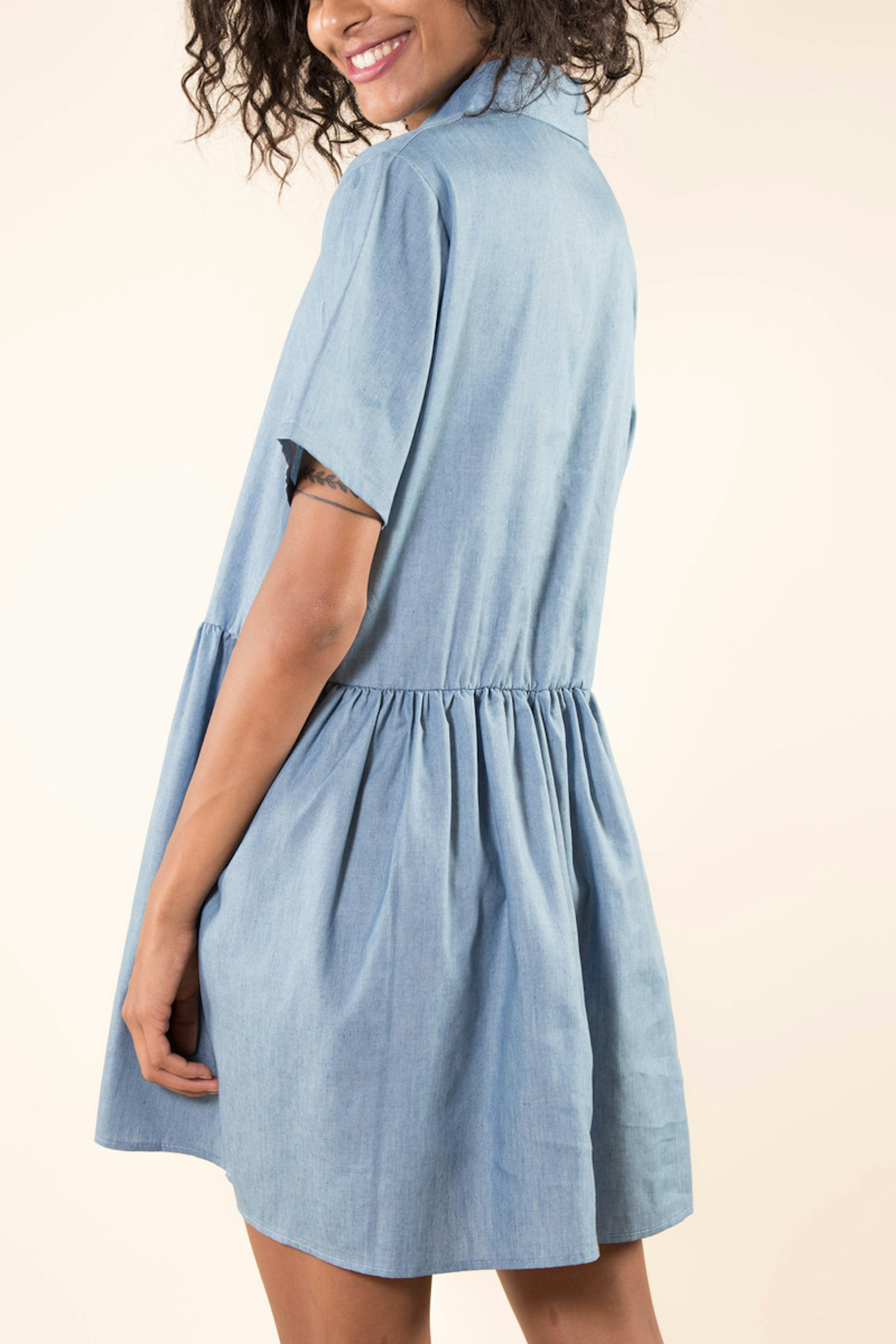 La robe baby doll de l'รฉtรฉ ! Remy est une robe courte inspiration jean, mais dans un tissu plus lรฉger et moins rigide. L'ensemble de la robe est รฉvasรฉ, et un piping en dentelle anglaise est prรฉsent sur tout le devant de la piรจce, coupรฉ ร la maniรจre d'une chemise. Avec quoi la porter? Une paire de baskets blanches ou des sandales plates.