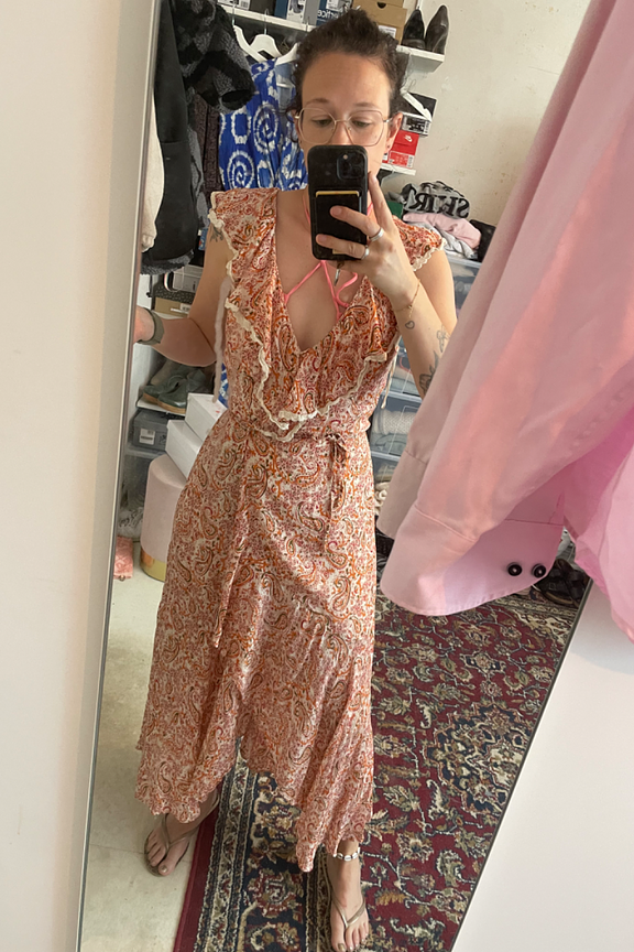 โTrรจs belle robe, la pression poitrine ne tient pas bien, un peu compliquรฉ ร comprendre comment elle sโattache, un peu froissรฉeโ