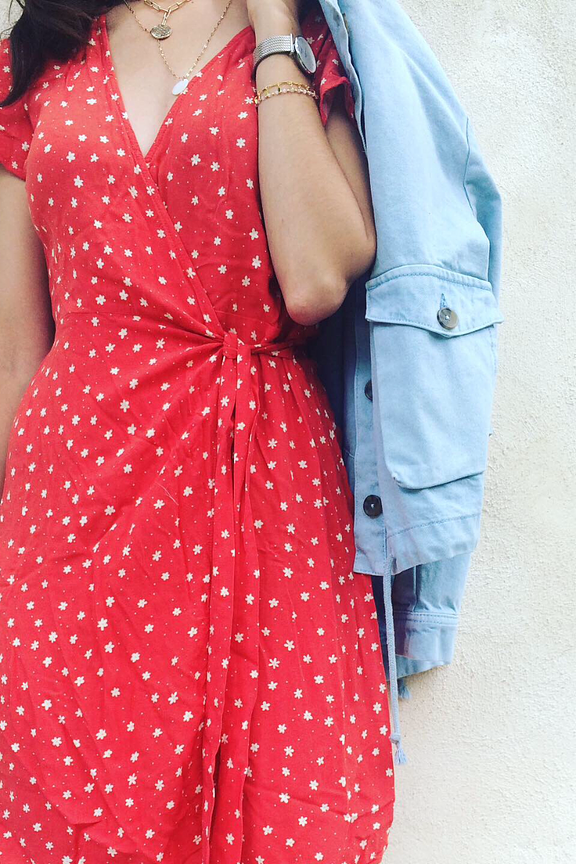 Coup de coeur pour Rosario, cette robe rouge portefeuille ร l'imprimรฉ estival. A porter avec une petite veste en jean, on adore !