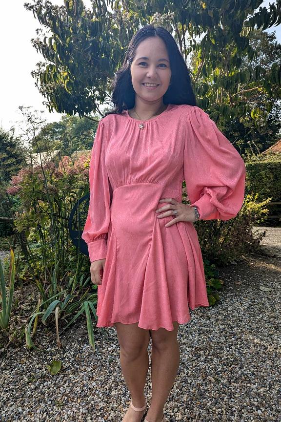 “Belle robe. Transparente au niveau du haut donc on voit tout de suite le soutien gorge même s’il est rose. Et les boutons aux manches et au niveau du dos ne sont vraiment pas pratiques à mettre et à enlever.”