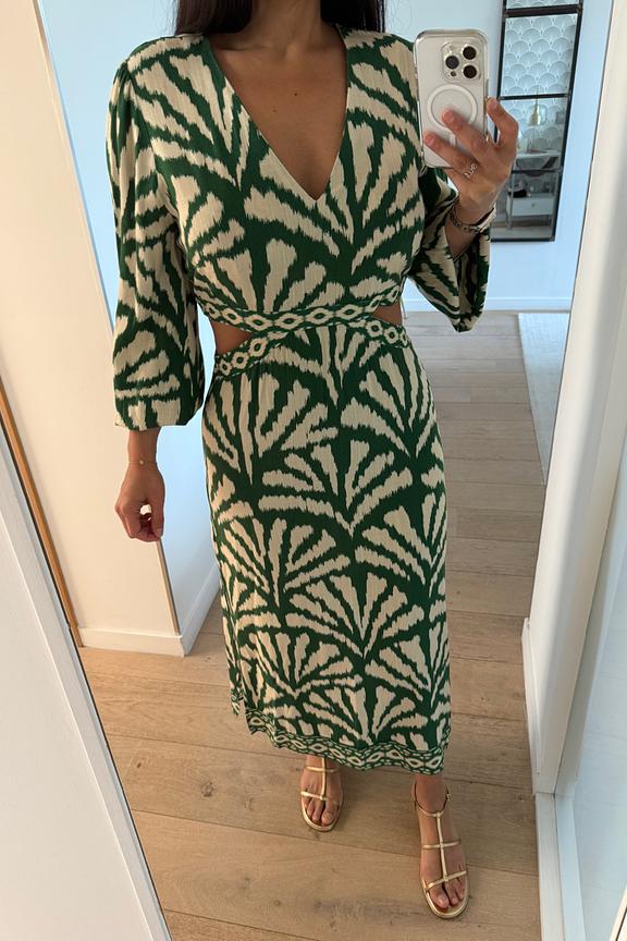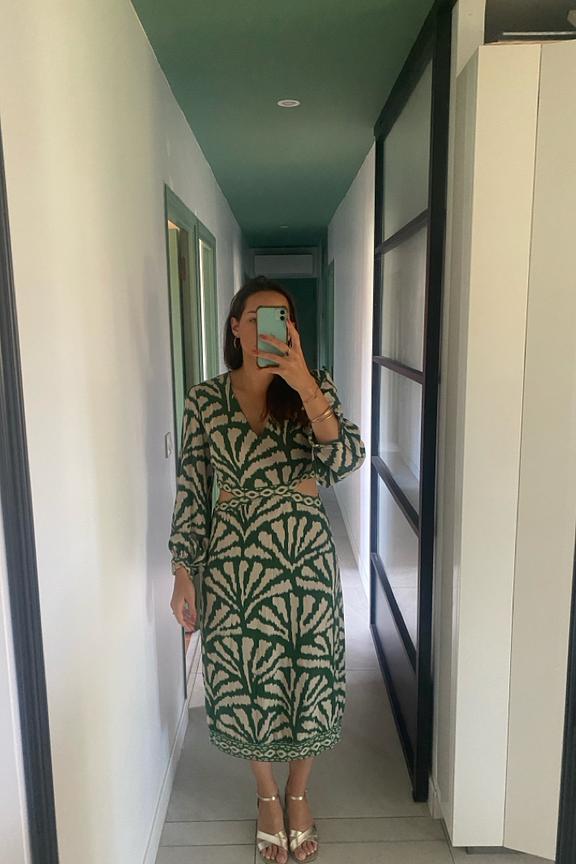 Ajoutez une touche bohรจme avec des sandales dorรฉes, parfaites pour une journรฉe ensoleillรฉe. โ€ข Robe imprimรฉe โ€ข Dรฉcolletรฉ en V โ€ข Manches courtes โ€ข Taille marquรฉe โ€ข Imprimรฉ floral