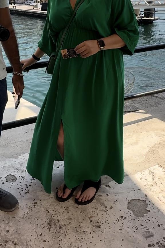 “Suivant les accessoires la robe peut à la fois être porté en casual ou alors pour un événement plus festif ! Le tissu est léger et très agréable à porter.”
