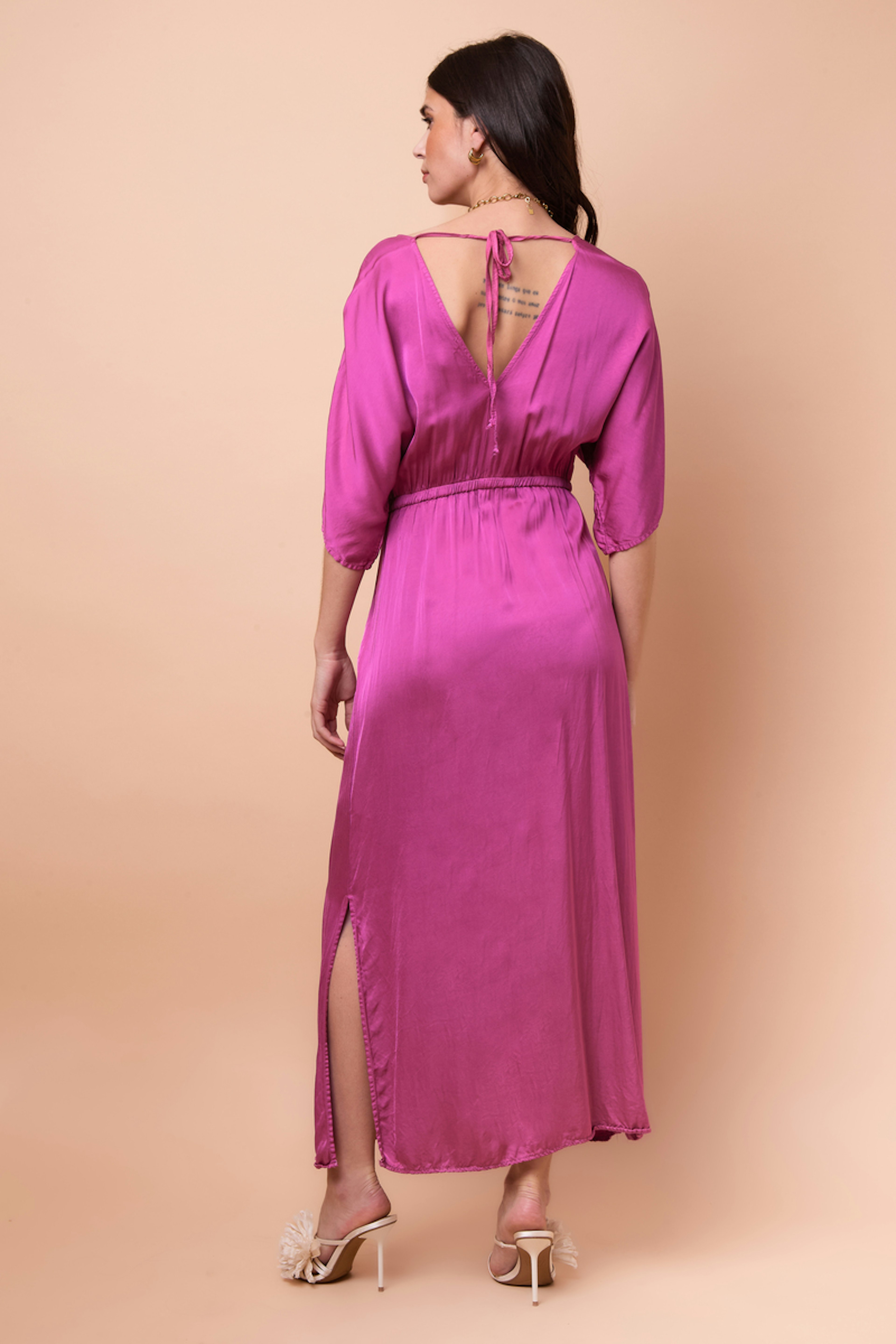 Faites une entrée remarquable lors de vos soirées estivales avec cette robe rose éclatante. • Robe longue en viscose • Jolie ouverture dos • Coupe fluide • Manches kimono courtes
