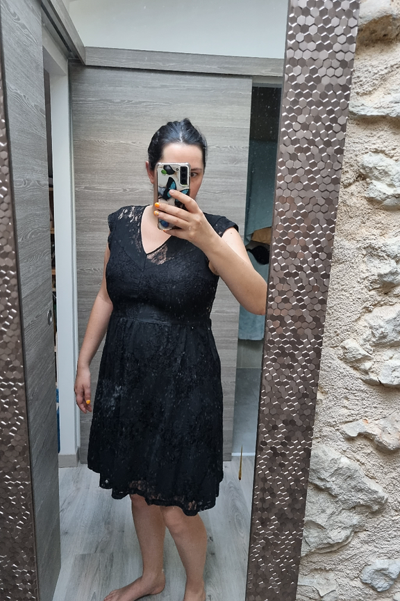 โTrรจs belle robe, belle dentelle mais je ne l ai pas portรฉe, taille marquรฉe, ร privilรฉgier avec un ventre plat!โ