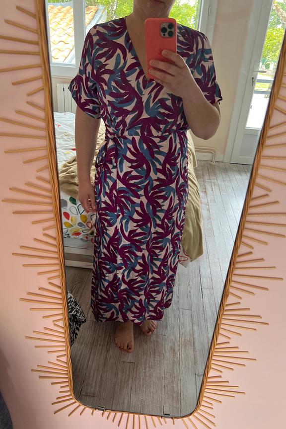 Enfilez cette robe cache-cœur La Fée Maraboutée pleine d'allure pour un été vibrant. • Robe longue en Viscose • Encolure cache-cœur • Imprimé végétal